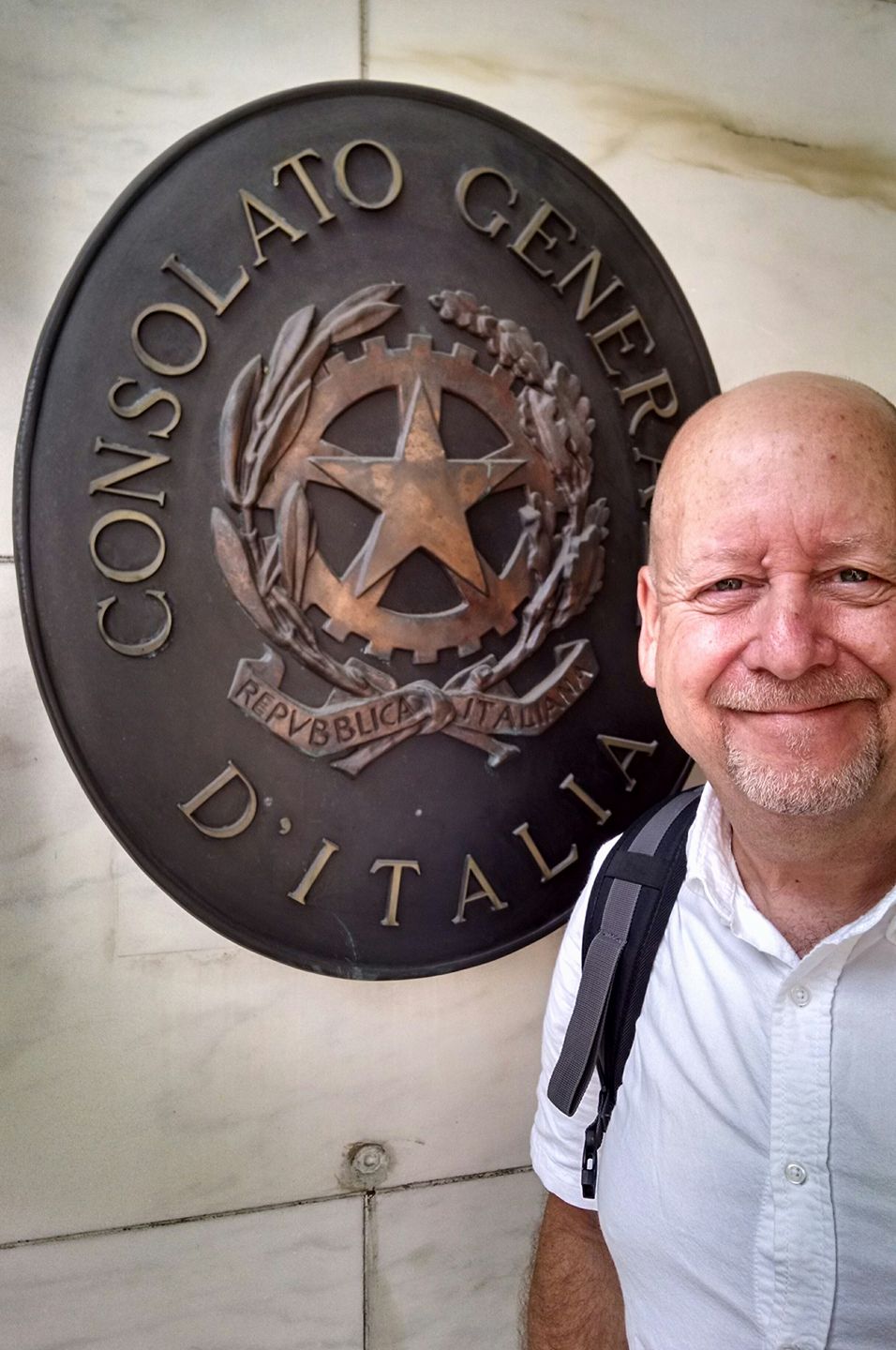 To my husband! John is now an Italian citizen. He holds dual citizenship – USA & Italia. How did this come about? He married me..smart man.