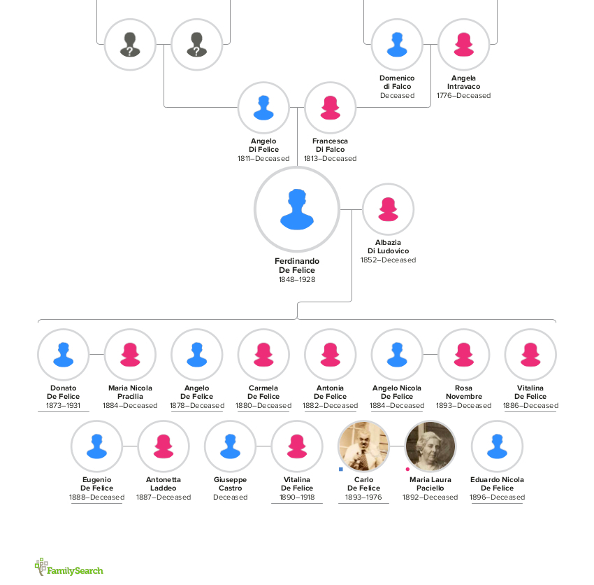 While I waited to hear back from my cousins, I worked on our family tree. I wanted to bring that, along with some of my family pictures, to our next meeting. I used all the information that Alberto collected along with Familysearch.org, Ancestry.com (and Ancestry.it) and antenati.san.beniculturali.it for my research. As the tree grew in unbelievable proportions, I cut and taped until I had both De Felice lines spread out to show Michele. I felt I had to substantiate my claim as a De Felice. Not that they asked to see this, but I just felt it was a reassuring measure for them to see the actual family connection.