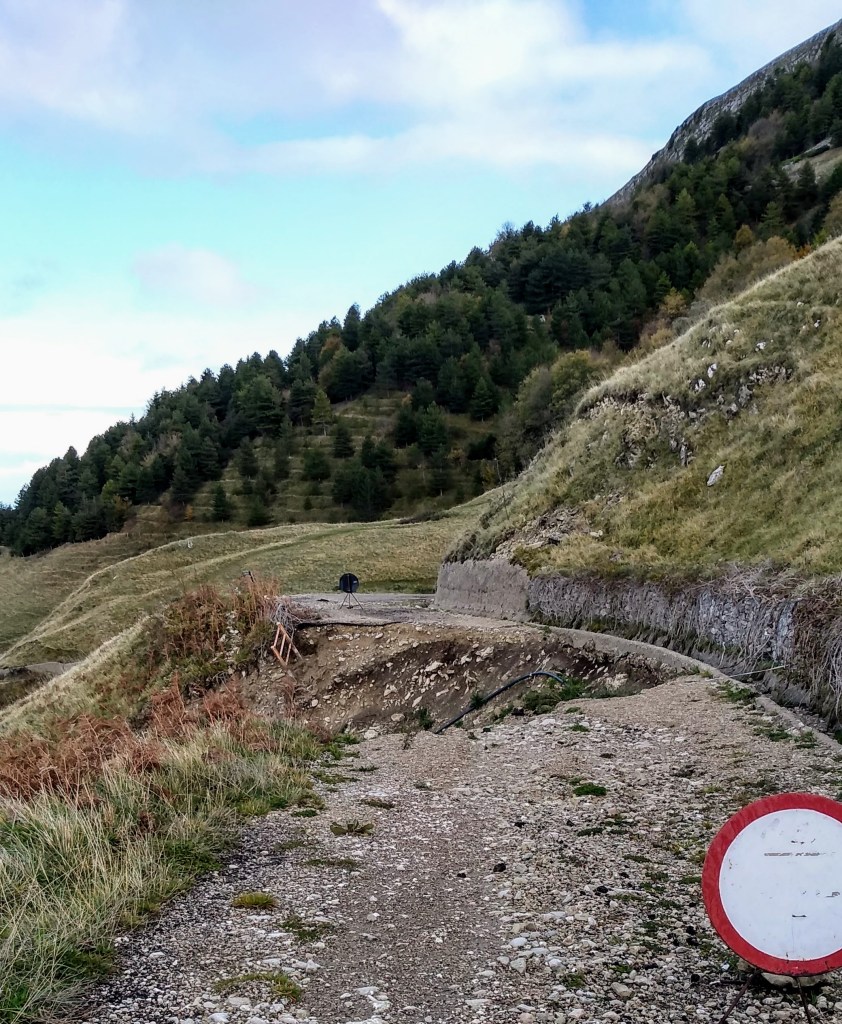 We parked up the mountain, just below the ancient village. Basically this was going to be a gravel road trek, total about 6+ miles. We would end with a short piece of trail to the castle and back to our car. As we began our hike, the road wrapped behind the mountain, facing the frazione of Acquaviva and the town of Montazzoli. The leaves were changing and the views toward Montazzoli and the Majella were vibrant and stunning. (Just note that you cannot drive behind the mountain on this road. It has washed out and is only passable on foot. )