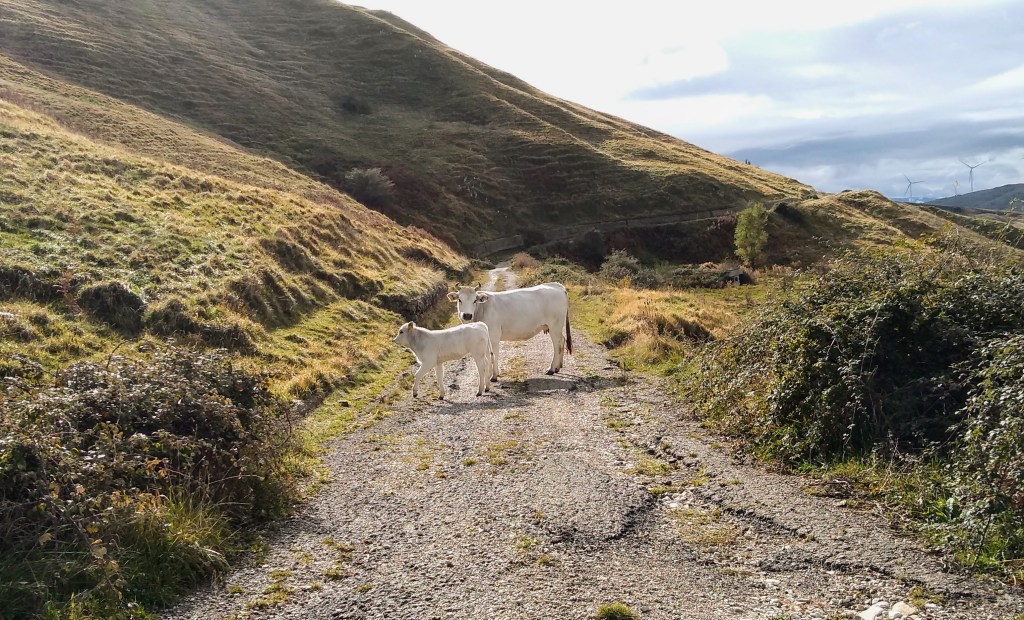 This part of the hike is relatively flat and relaxing. We passed by a herd of free range cattle and arrived at a barn. Out back was a lone horse, napping in the sun. Numerous trails were etched into the mountainside; a reminder of those days when many herds and flocks roamed freely.