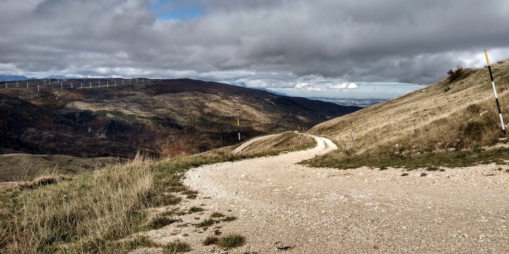 The turbines just above Rocca Vecchia are visible from our house as they are for many homes around here. John and I have been talking about hiking this mountain top for some time now. There is an access road that runs the length of the ridge, and numerous wind turbines. We finally headed out one day in early November, hoping for gentle winds and sunny skies..
