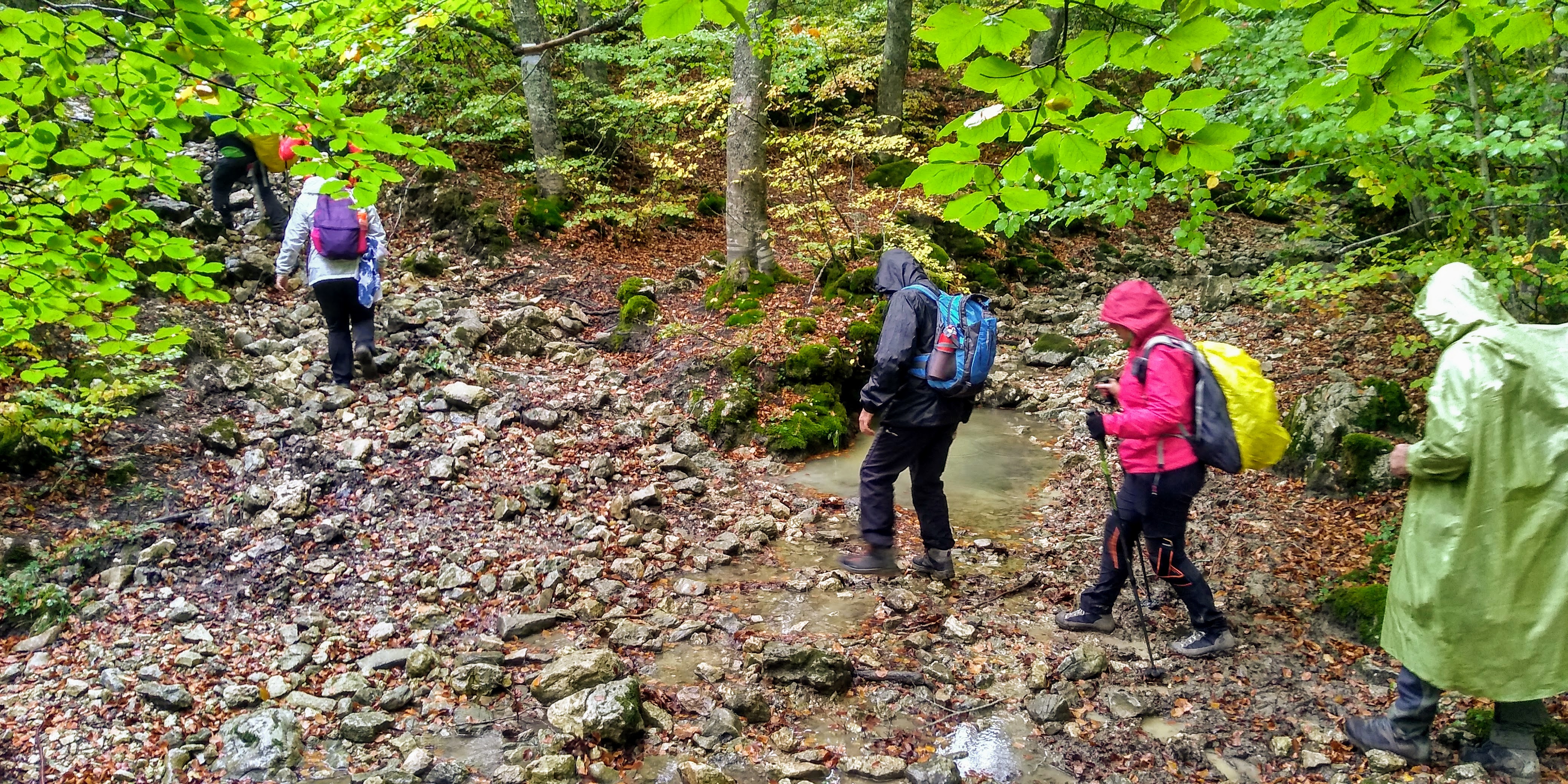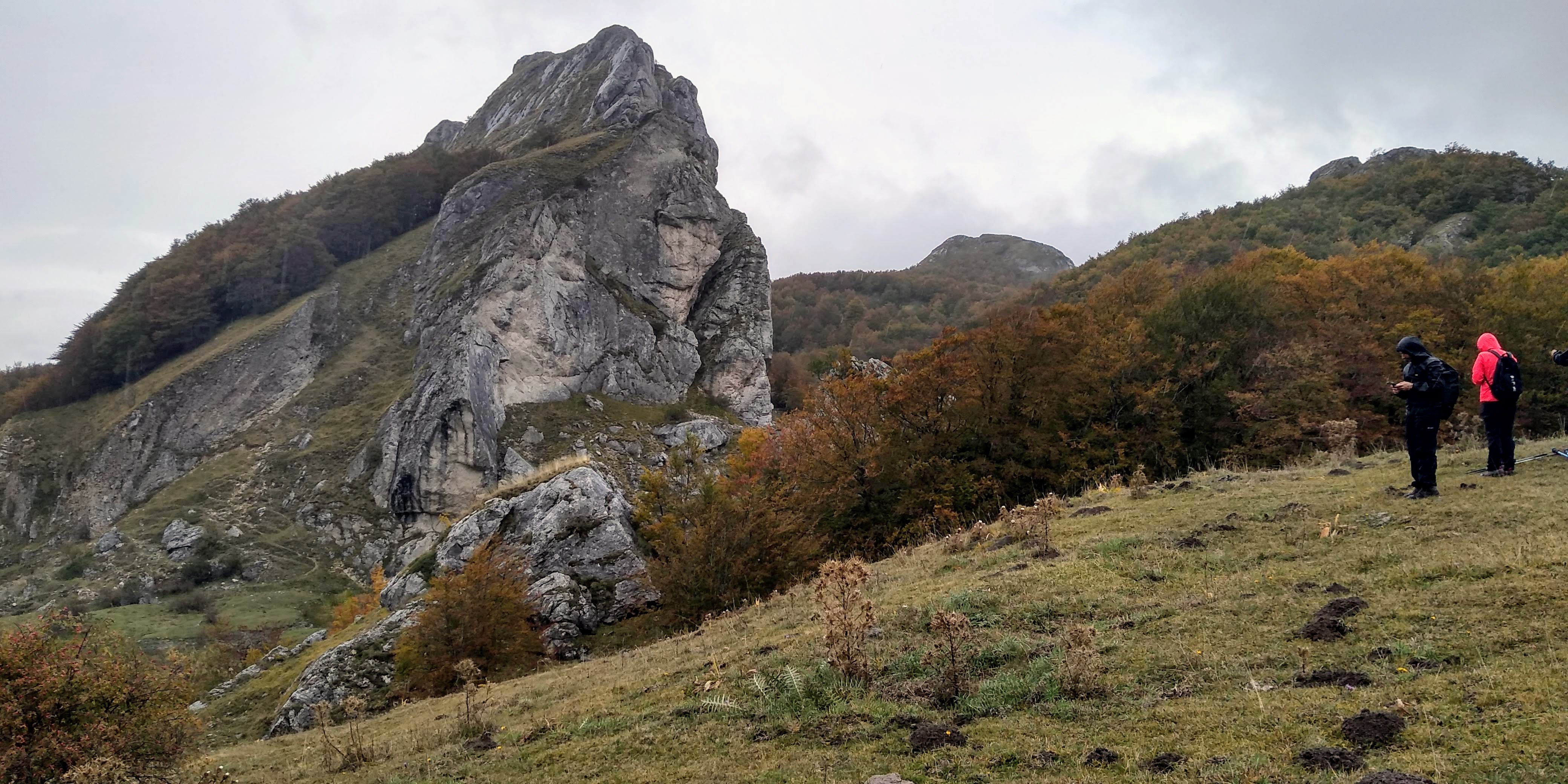 We did spend an October day hiking with the group Majexperience, as always a great time. This time we were a bit challenged as it rained all day and the trails and fields turned into a mud bath with footing a bit precarious. But it still was another amazing hike to remember. The leaves were just changing and the temperatures were cool with the rain. The forests were mystical with fog and I hoped that we would see a wolf or fox. We had a break in the weather for a little while and we’re able to eat lunch without getting soaked. Our goal was Il Laghetto di Pietra Cernaia, a small lake at the foot of a monstrous rock outcropping. The day closed with us returning through pastures in the cold rain as evening approached. Definitely a tough day, but invigorating and satisfying.