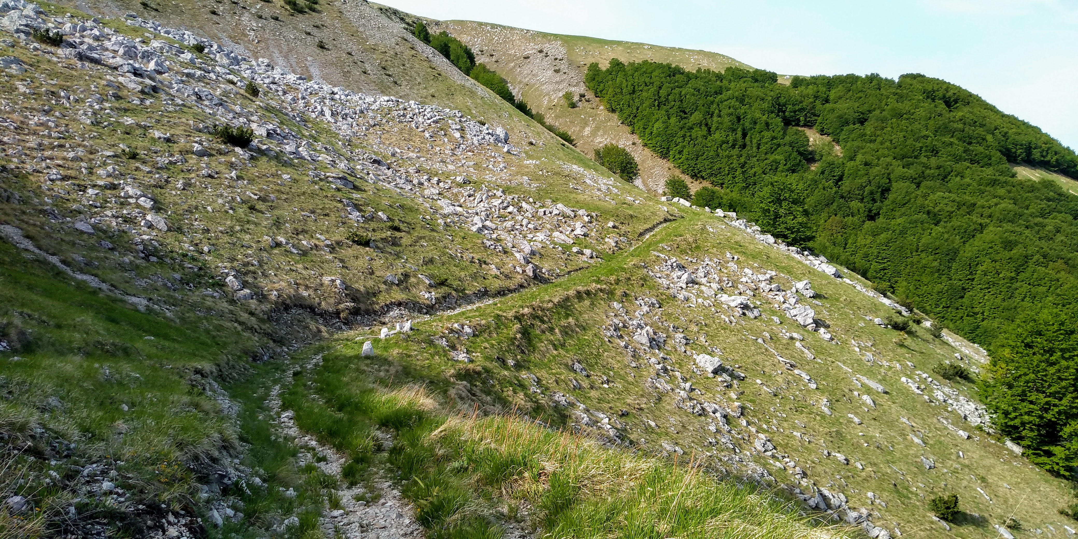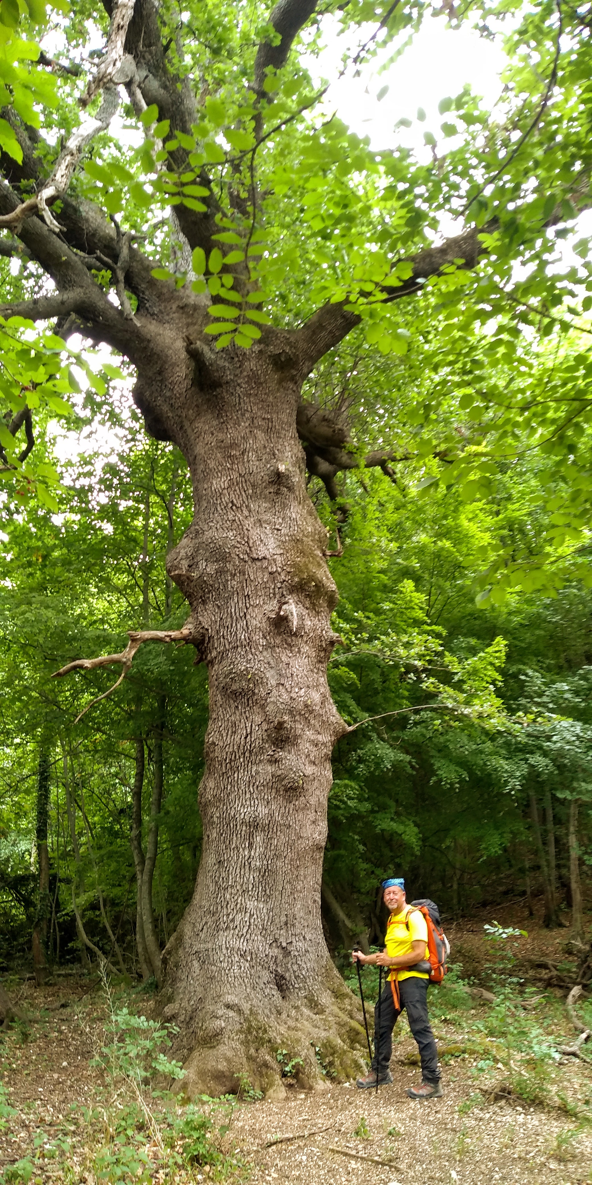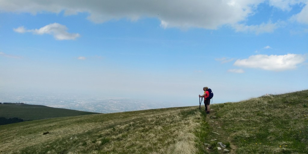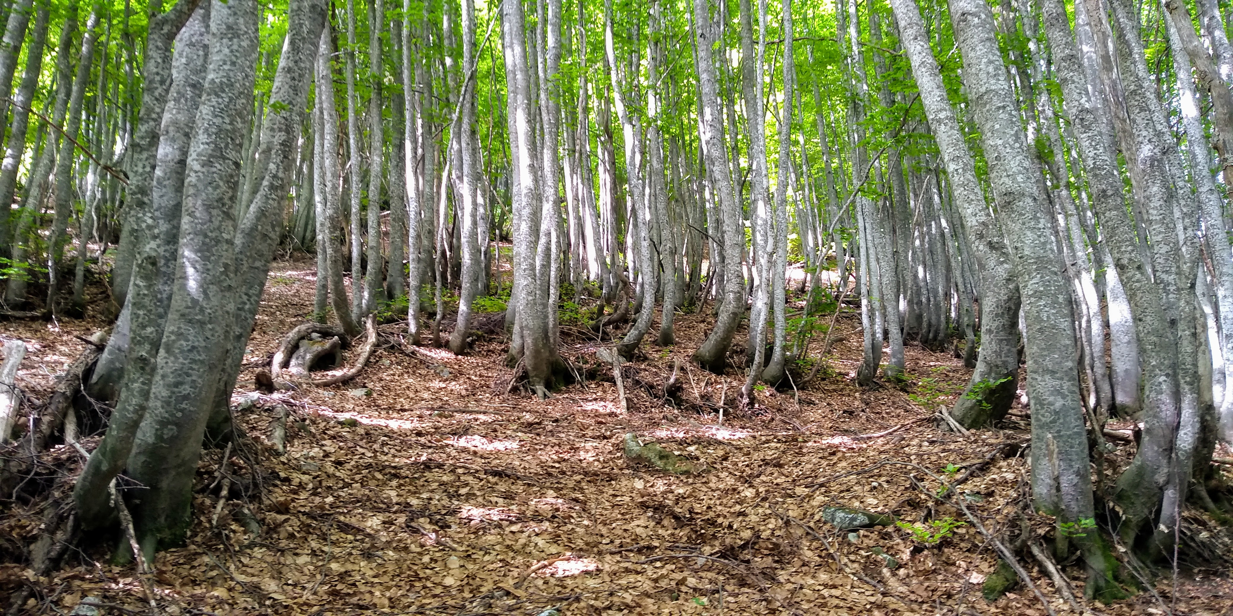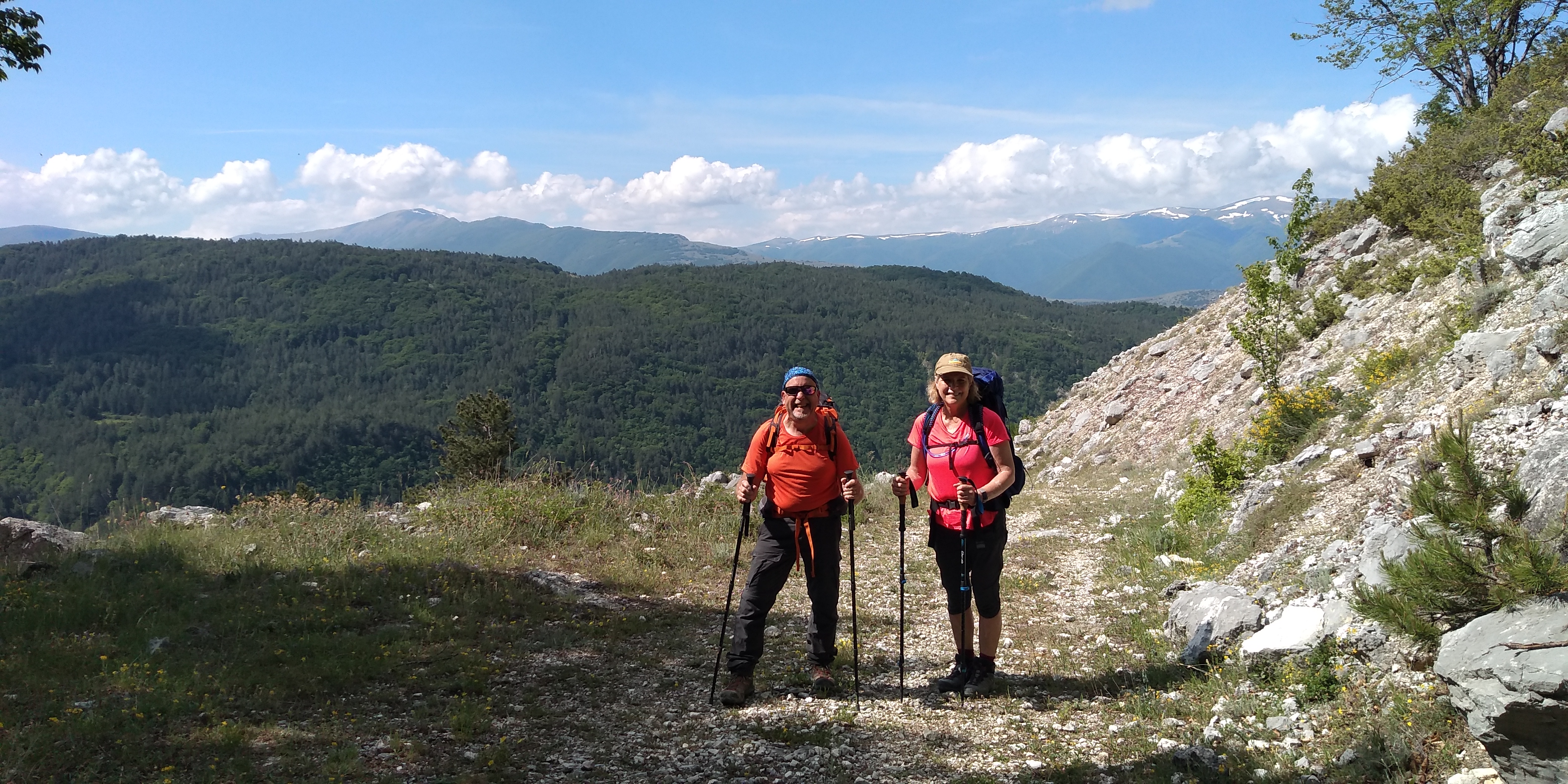 Today’s tappa was a day for wide open spaces and spectacular views. Today we would have our greatest elevation gain, approximately 3400 ft. We did our best to get an early start to have the toughest part of the climb done during the cooler morning hours. Unfortunately, we didn’t quite make it and the morning stretched on hot under the clear skies until we reached the most beautiful beech forest. The air cooled, we gave a sigh of relief and caught our breath.