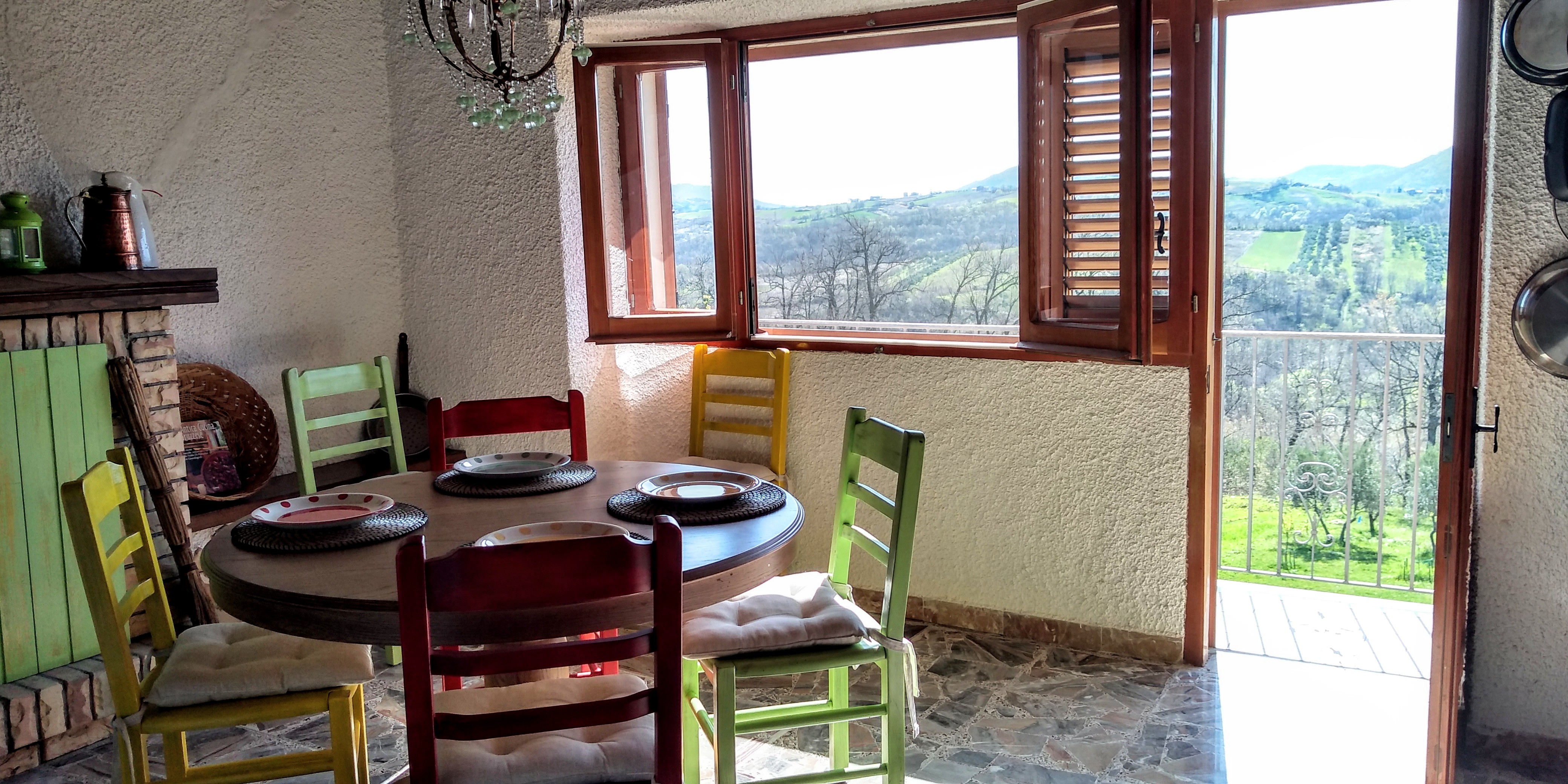 John and I both have strong hospitality backgrounds, with John as a professional chef and I had worked at a B&B as well as Customer Service/Tour guide at Virginia Distillery. Both of us have OC tendencies so offering a sparkling clean accommodation with numerous amenities was just something we fell into naturally. We gave the apartment a name: Case Serre Holiday Apartment; Serre being the neighborhood that we lived in. It offers its own private entrance and parking area, long balcony looking out over the mountains and hills of southern Abruzzo… our backyard. Here are a few pictures of the apartment and view.