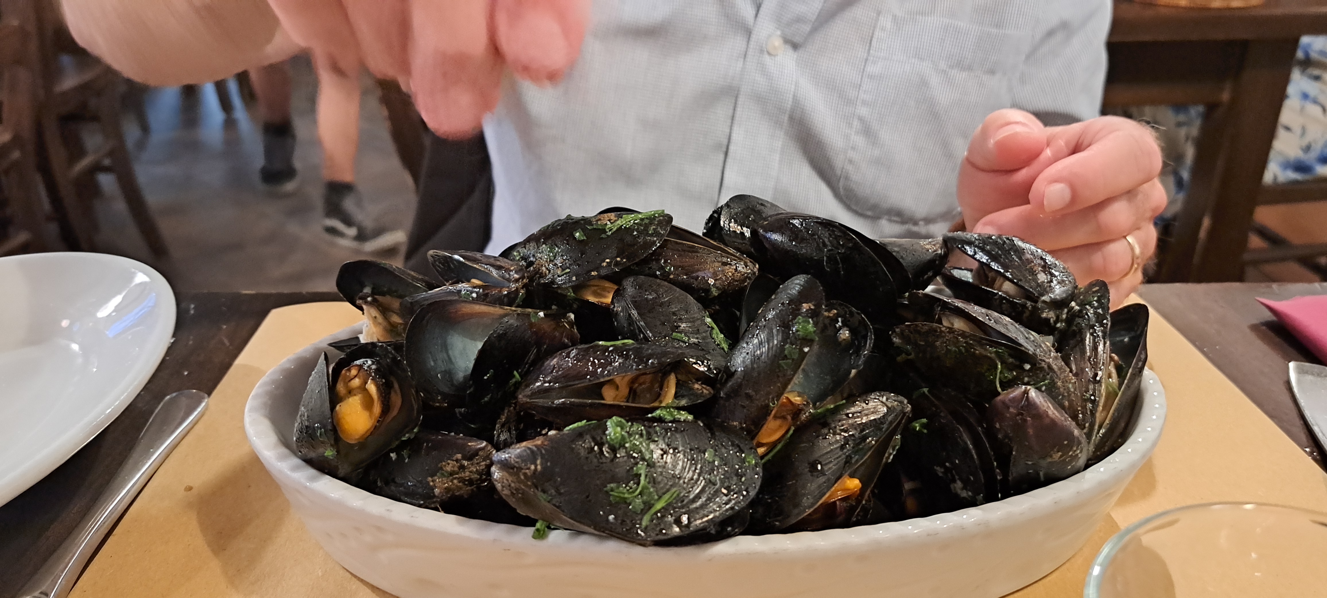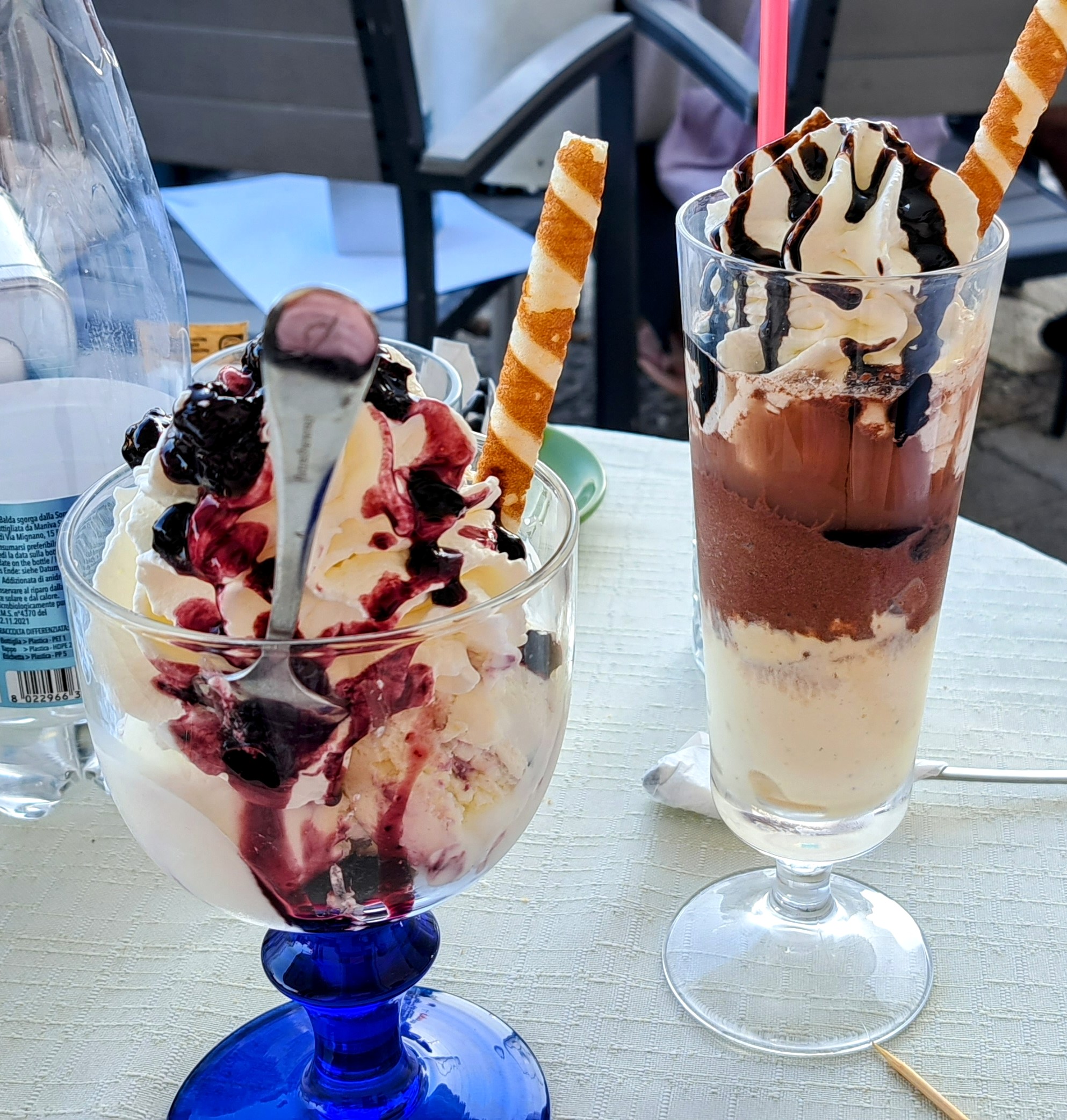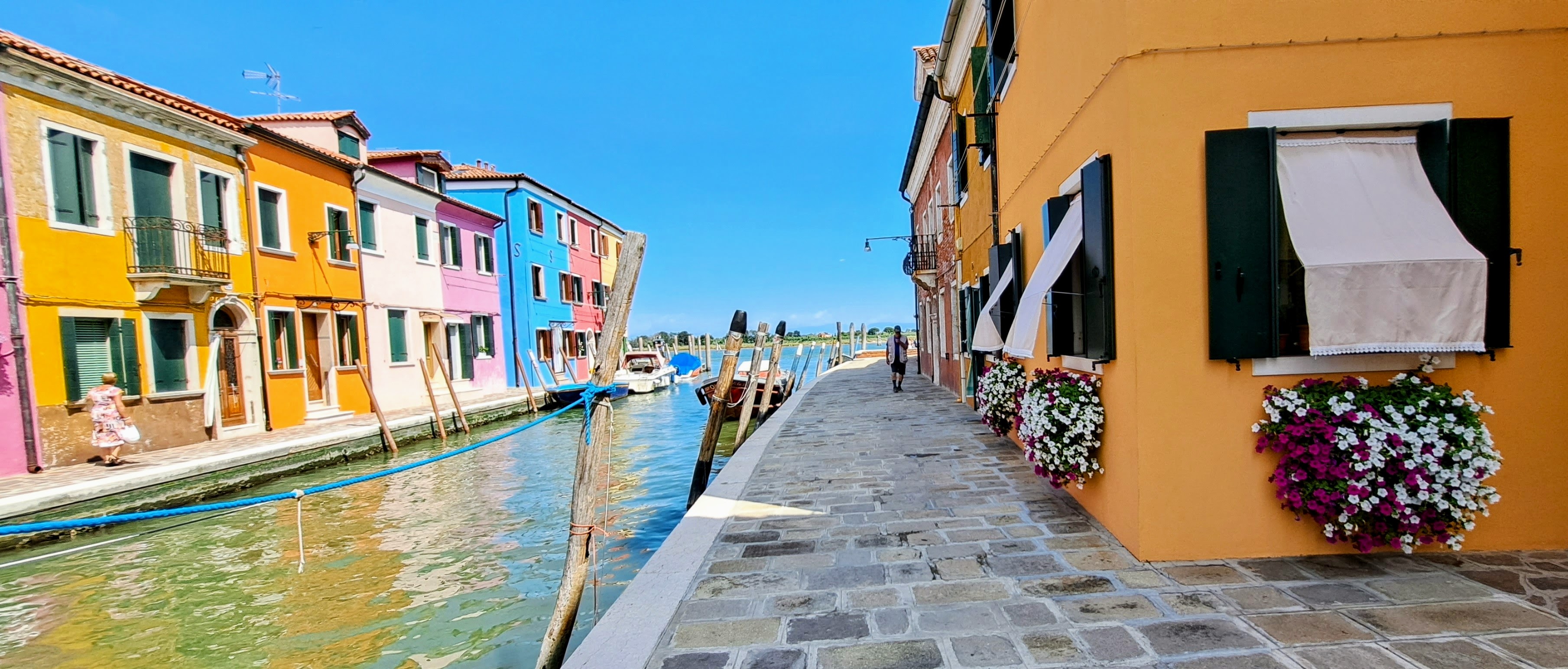 We wandered through different neighborhoods, crossing numerous canals, visiting many of the stunning cathedrals the hordes of tourists miss. Ate amazing seafood, enjoyed the AC in our hotel during siesta time, as it was a very hot week (40C), took boat rides to the islands, and yes, ate gelato! We knew we wanted to see San Marco’s piazza and basilica and make the 15-minute walk over to that area. Absolute craziness in regard to the number of people, and even though we had skip-the-line tickets, the basilica was packed to the gills. We were basically pushed along by the masses. Afterwards, we headed back to our quiet neighborhood to decompress. We had the opportunity through our hotel to take a ‘free’ boat ride out to the ‘glass’ island of Murano. I was concerned that we would be high pressured into buying the high-priced handblown glass (way out of our budget) but it was handled with class. We also visited the colorful island of Burano and had a lovely lunch.