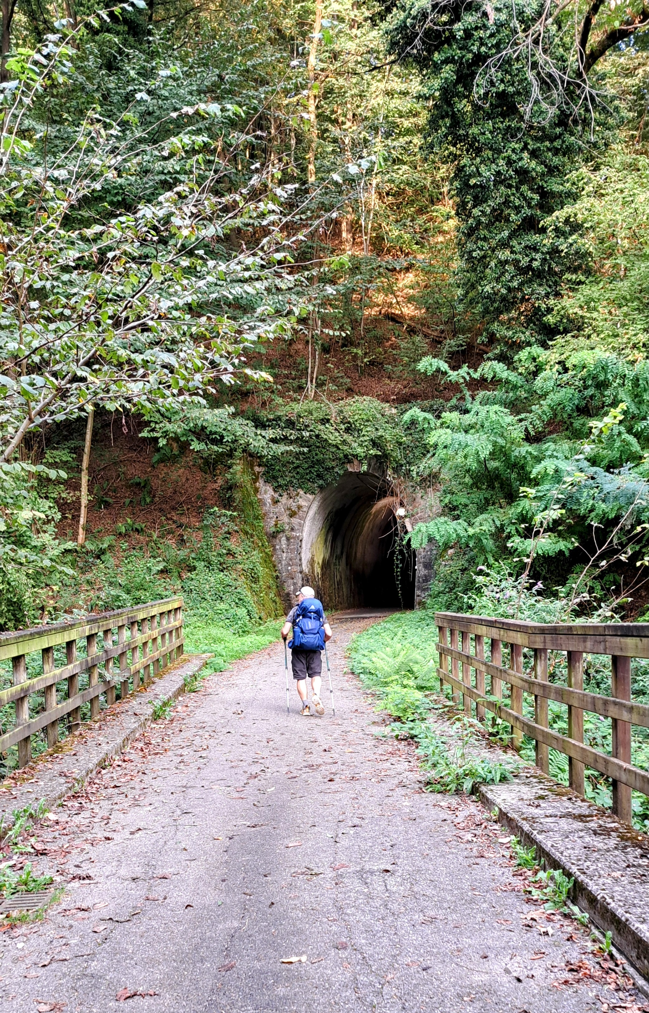 Tappa 1 , We begin! – Lavena Ponte Tresa to Ganna. 14.2km/8.8m. A gradual, relaxing climb from the lake up through forests and parks, consisting of a few tunnels. This particular part of the trail was once the tramway in the area. We passed through quaint mountain villages, rested by the side of a lovely lake to eventually arrive at Badia di San Gemolo in Valganna, our destination town for the night.