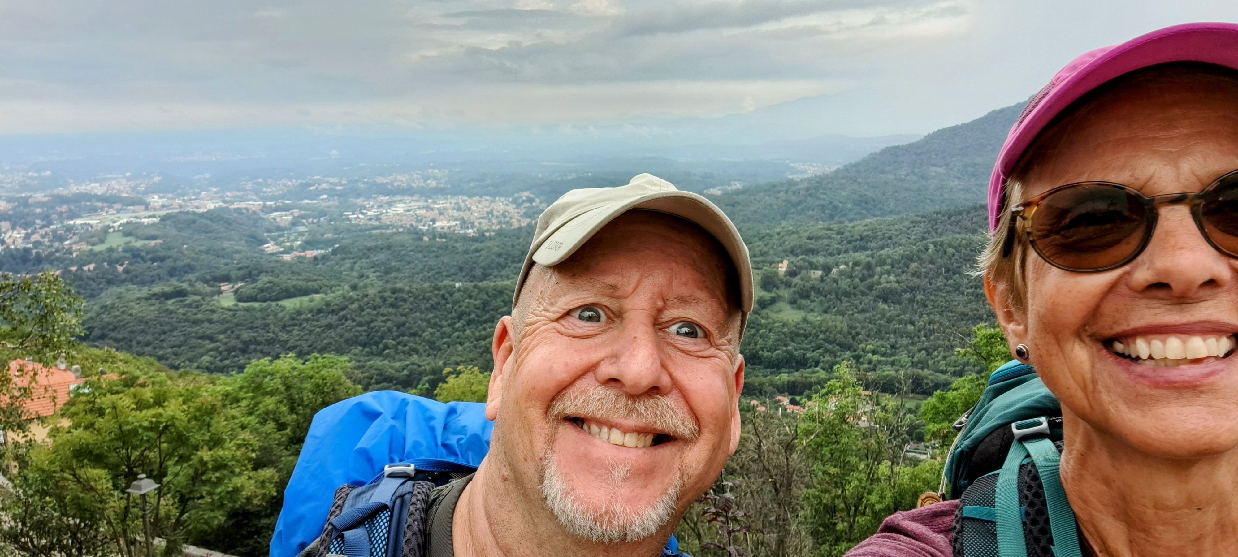 In hindsight, we came away with a few lessons learned, as we continue our plans to do additional camminos. At our age, it is time to lighten our backpacks even more! We will take advantage of transport services to arrange moving our after-hours clothing, etc. from B&B to B&B each day. This will allow us to switch to smaller daypacks. The weight of the larger packs has become too much for our older joints. Also, we are going to pick camminos that are 6 days or less. Or we may choose to just do a shorter section of a much longer one. This cammino we just did was 8 days, with 6 days 90% on hard flat surface roads & bike paths. Much different from trail hiking. We have changed to well-cushioned trail runners that flex more than the low hikers we wore, and now I have trek-specific compression socks to use as needed. We will be much better prepared for the next time.