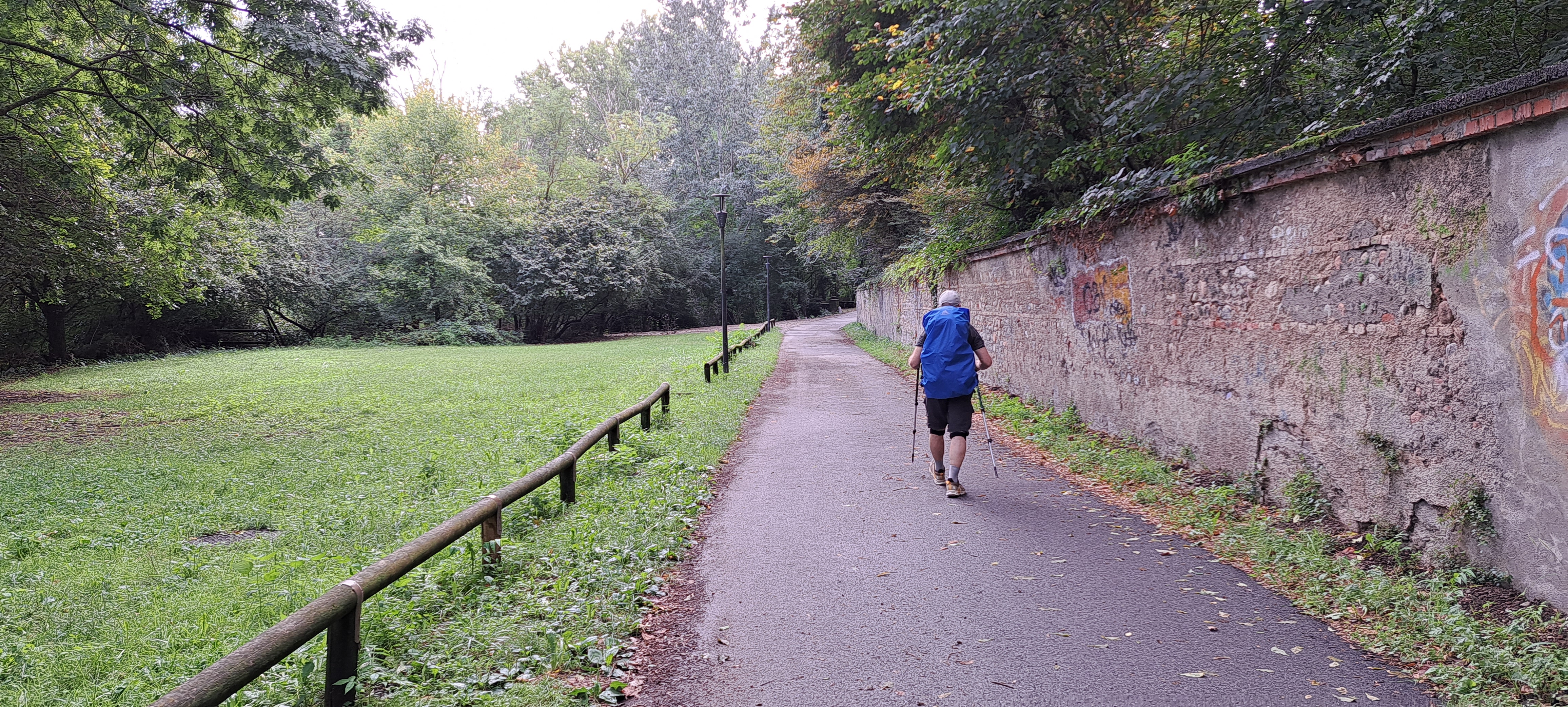Tappa 4, Castiglione Olona- Castellanza 21 km/13m. A peaceful hike today along the River Olona. Most of the villages were off trail, some being a good distance. We stuck to the trail, pushing on through some more rain, to take our lunch break at the captivating Monestero di Torba.