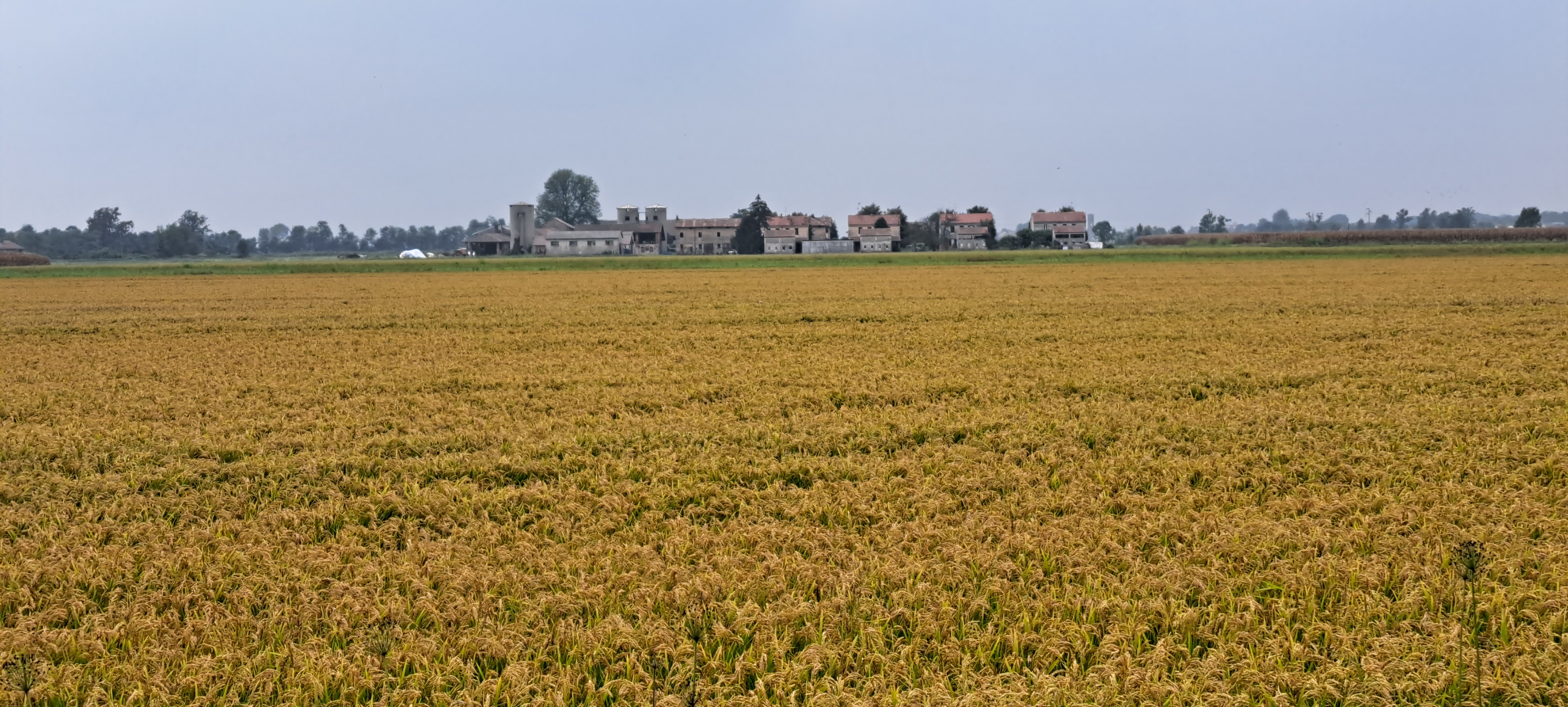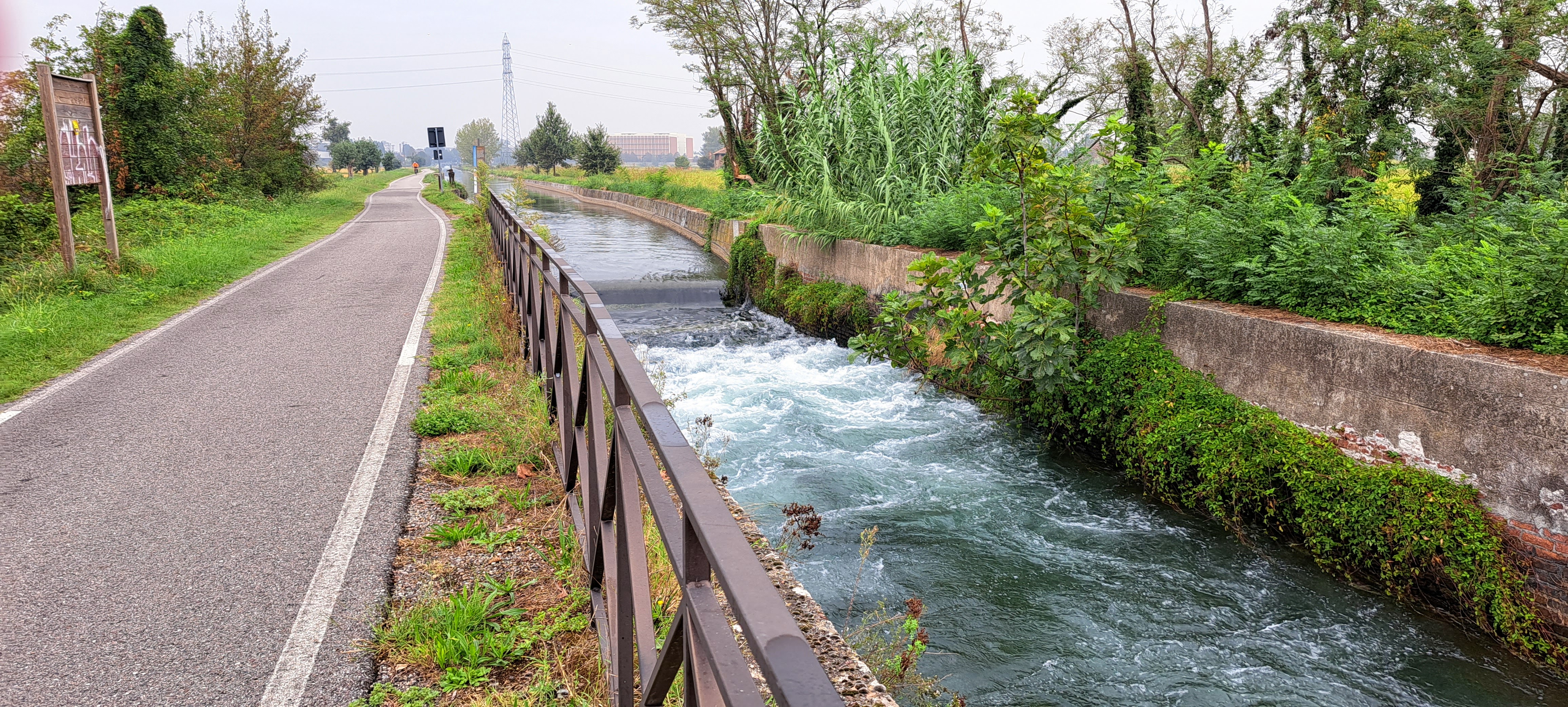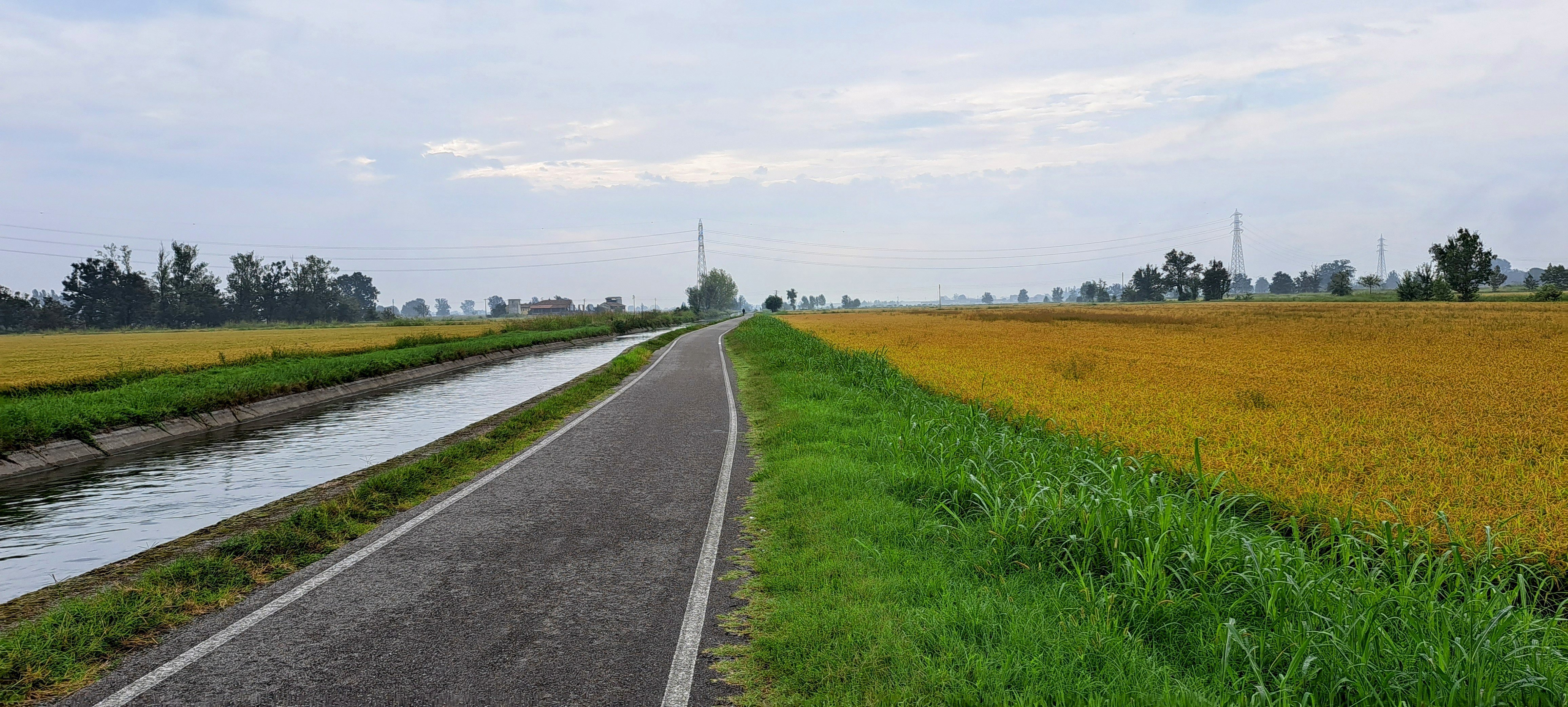 Tappa 7….Abbiategrasso to Bereguardo.19km/11.8m Today, we are heading south beside a different canal, giving us long views across rice fields, canal locks and spillways. Along the way, we stopped at the commanding Abbazia di Morimondo, but unfortunately, we arrived during off hours.