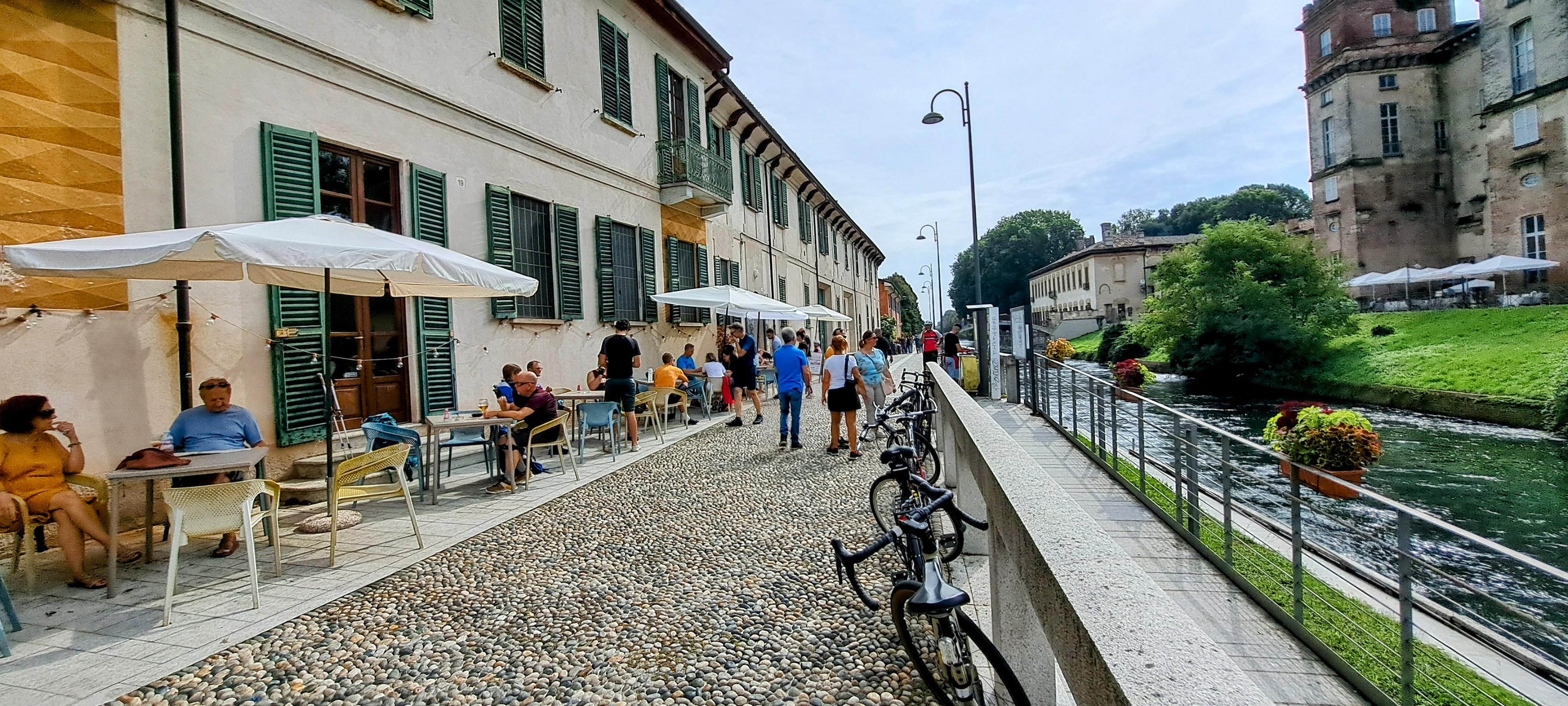 Tappa 6…Castelletto di Cuggiono to Abbiategrasso.17km/10.5m Today’s walk was along the Naviglio Grande (canal). Lovely ancient towns, cyclists, folks Sunday walking, boating. We are now in the area where we are sharing the trail with others, out for their daily walk or cycling. We definitely have to pay attention as the trail, in many spots is single wide and some cyclists aren’t exactly polite, but not all. We ended our day with an amazing dinner of pulled pork and slaw! Compliments to the chef and great music at The Cult Rock Pub!