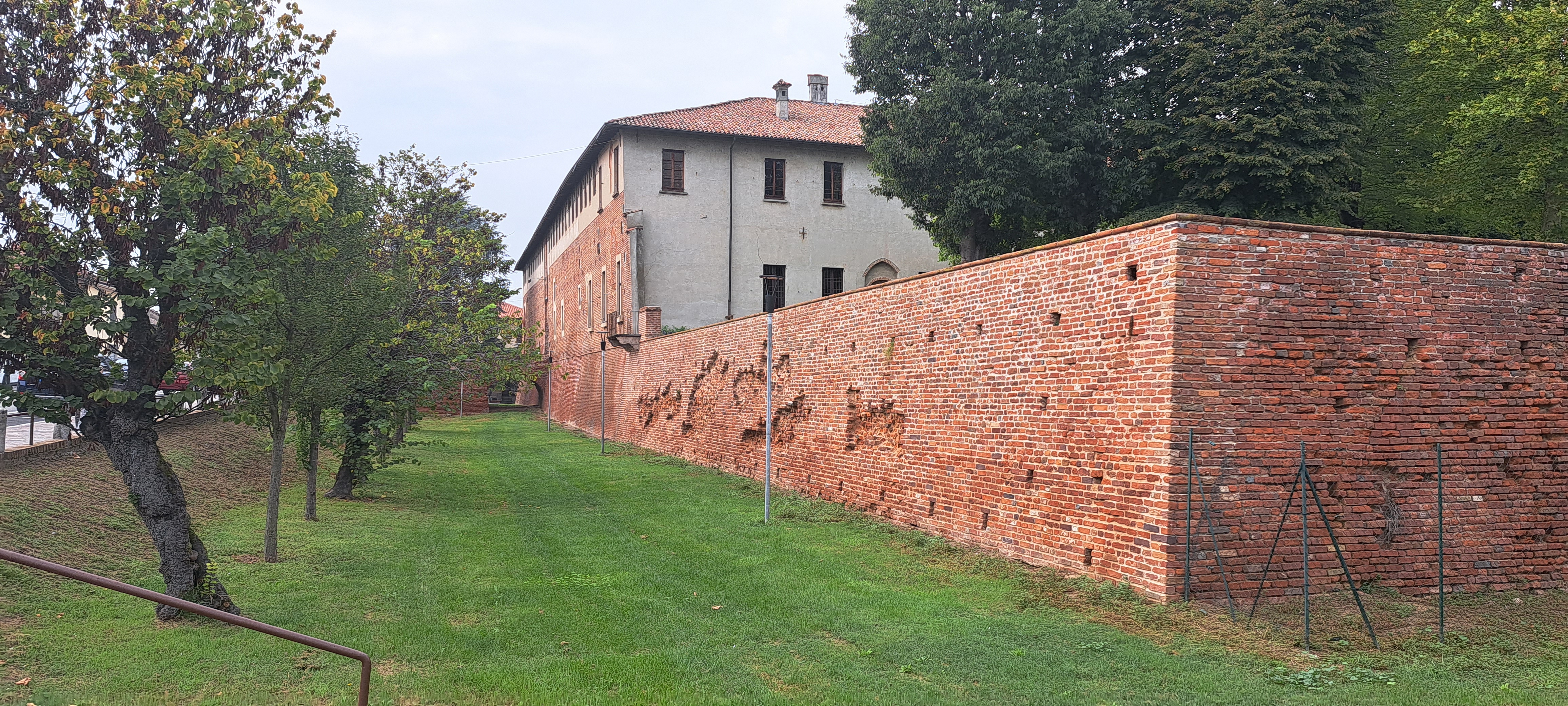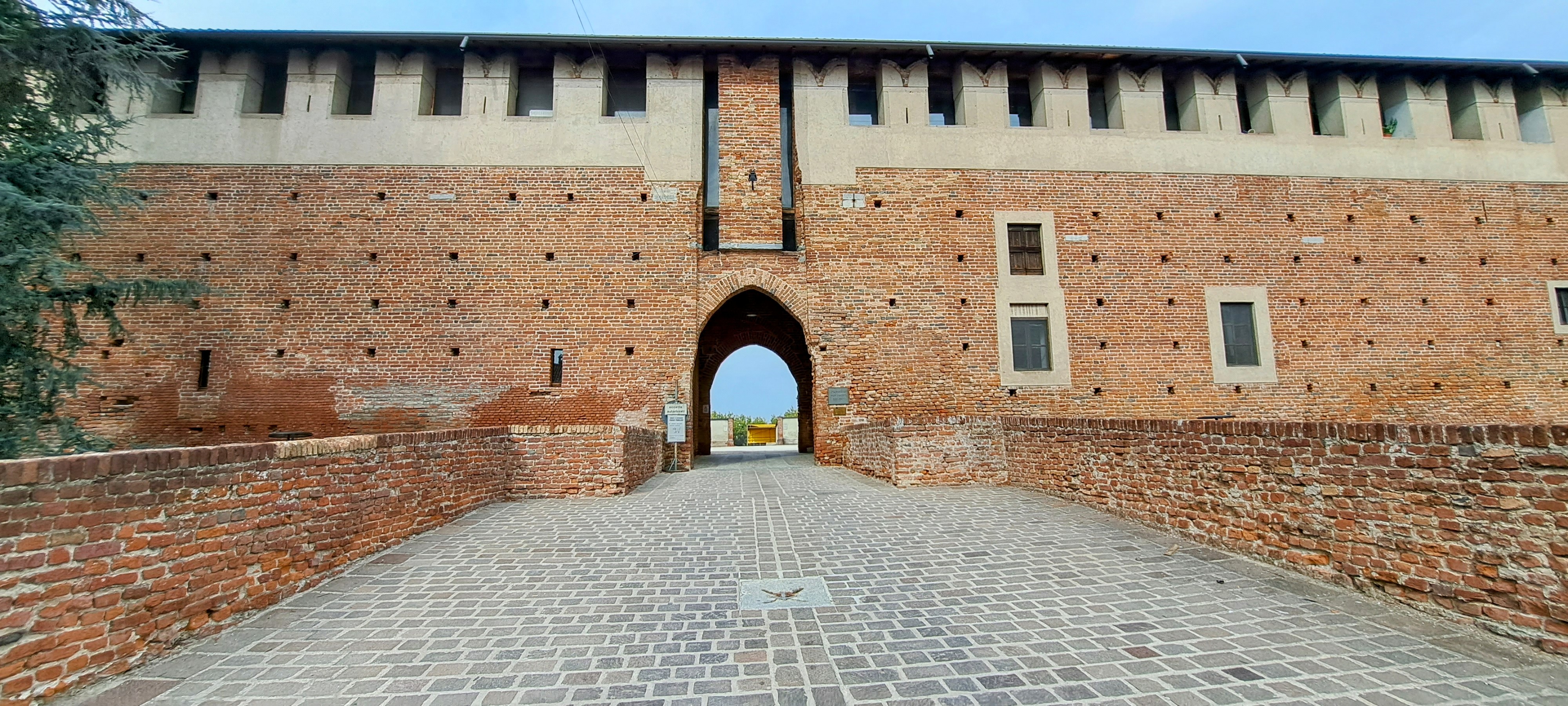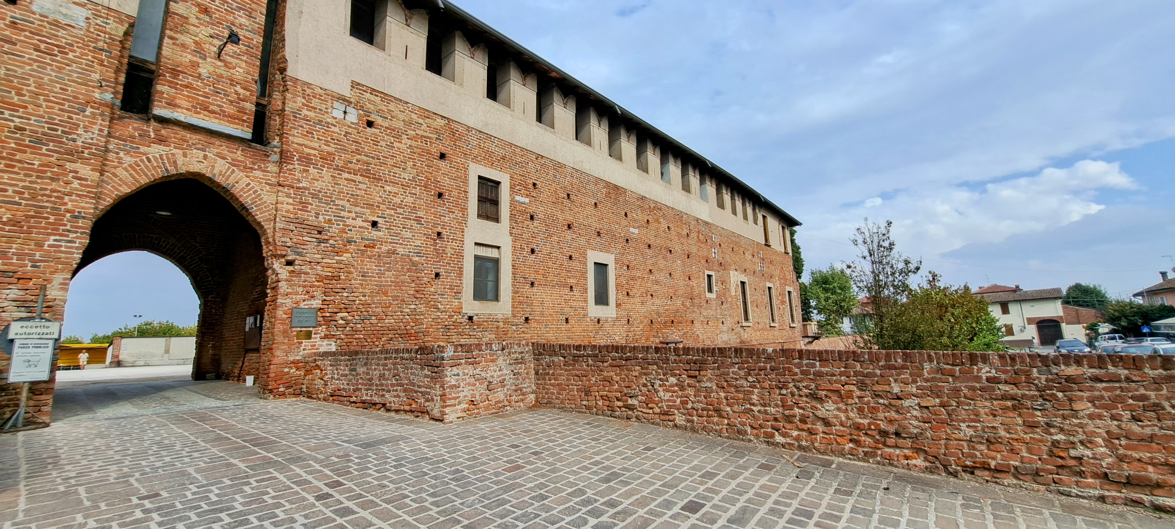 An imposing manor, with a distinct Visconti layout, the Castle of Bereguardo stands in the center of the village, surrounded by the clearly visible remains of the ancient moat. It has a square plan, but today has an unusual U-shaped structure, missing the north wing entirely. Without corner towers, the castle was presumably used more as a summer residence than as an element of the Visconti military chessboard. Entirely made of exposed bricks, it maintains its splendid large, mullioned window on the south façade, with parapets and decorative brick elements. The rather wide entrance door has traces of a drawbridge. Remains of an arch incorporated into the internal masonry suggest that the portal was remodeled in an unspecified period in order to reduce its size. Today it is the seat of the Municipality and houses the Civic Library, still preserving traces of the presence of Filippo Maria Visconti: the initials FM are affixed on one of the windows of the northern wing.