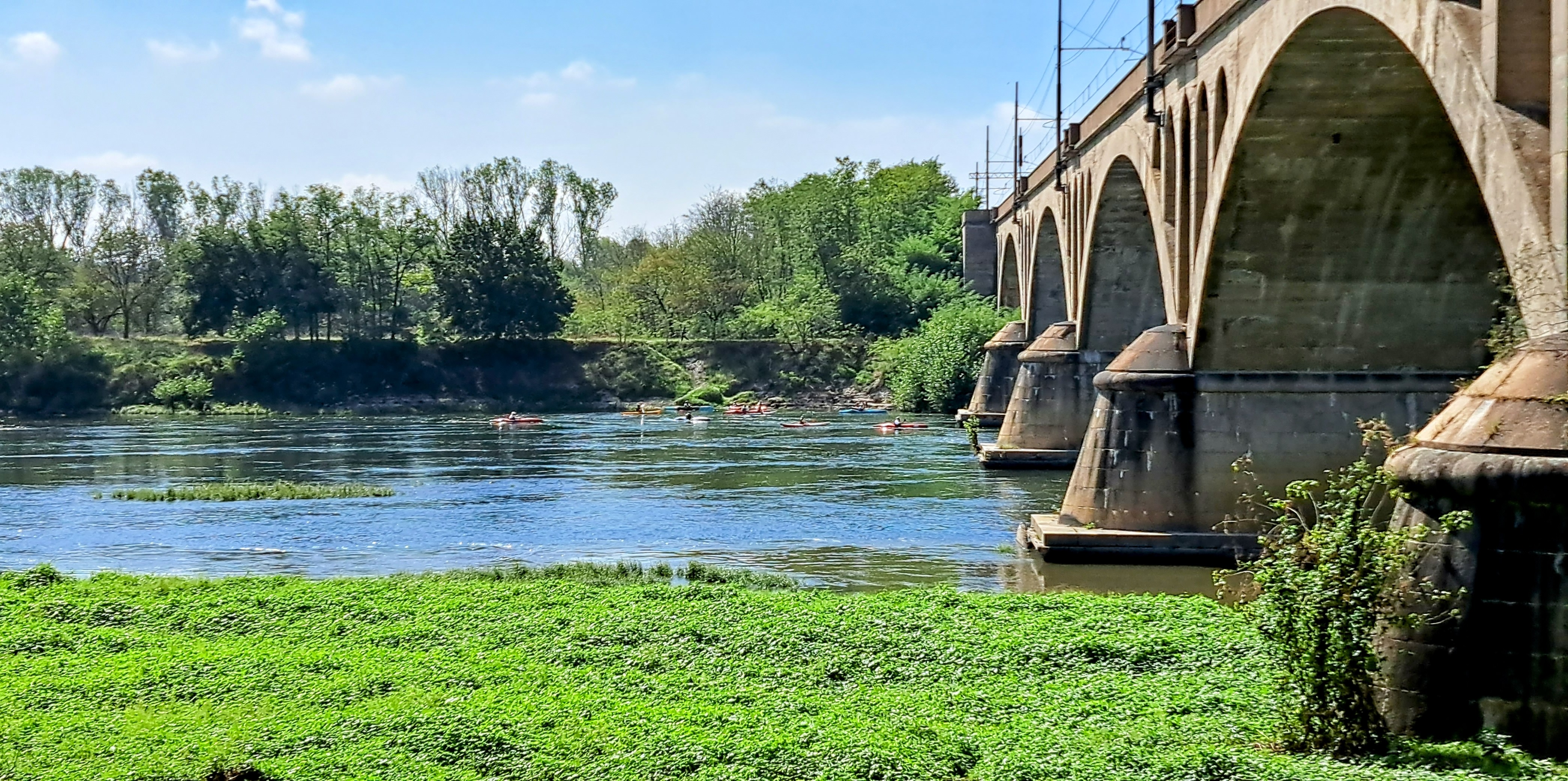Tappa 8 ..Bereguardo to Pavia. 16 km/10 m. Farmland full of rice fields, corn and sorghum, small villages, friendly folks and Ticino River. My ankle almost gave out, but we slowly pushed on. As we approached Pavia along the river, we saw the rebuilt Ponte Coperto.