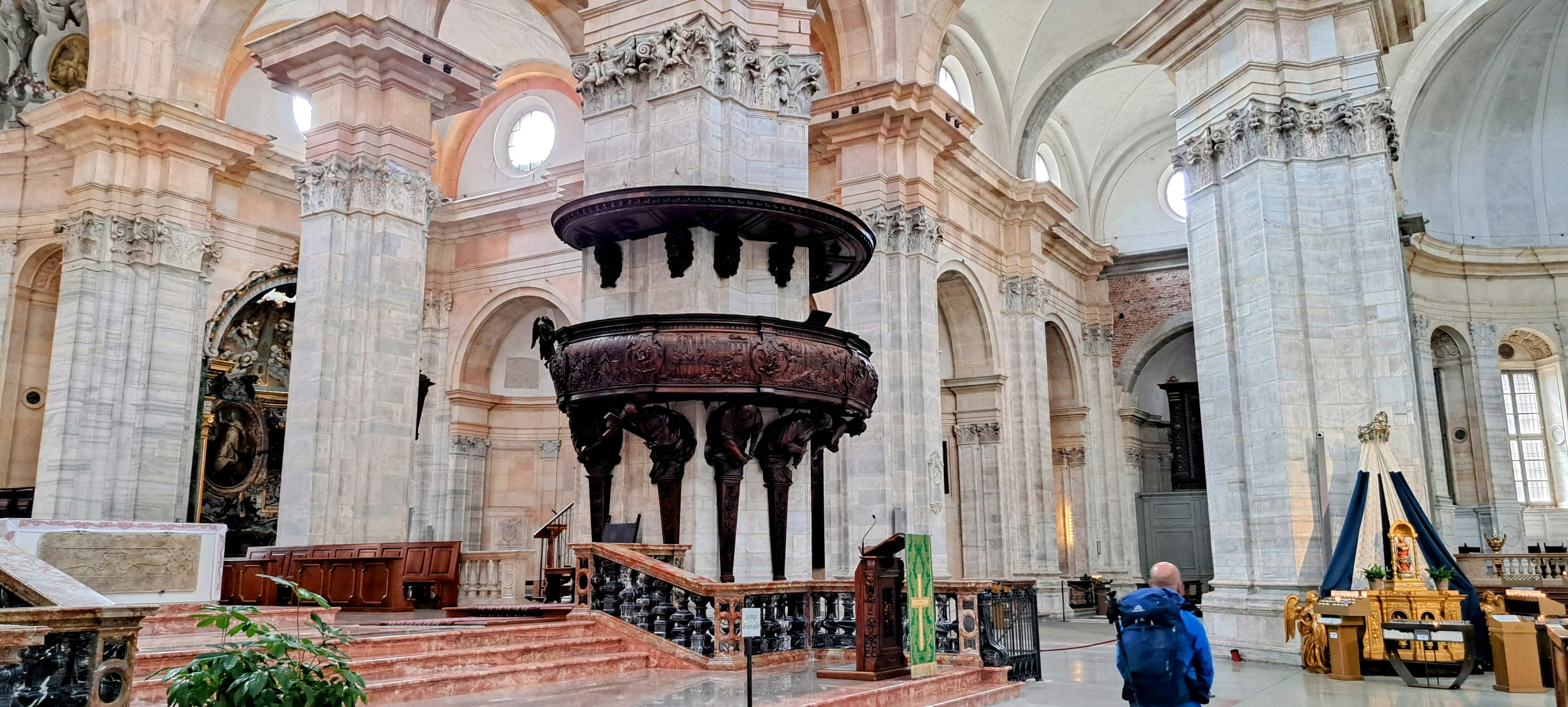 Today we got our final cammino passport stamp at Basilica di San Pietro in Ciel d’Oro, the culmination of La Via Francisca del Lucomagno. To obtain the testimonium (much like a diploma) and verify we actually walked the entire cammino, we stopped along the way at different designated places; participating bars, hotels, info centers, etc. So here we are with our final stamp and then I screwed up royally. My knees and ankles were hurting so badly, I totally forgot to ask for our testimoniums. The cleric wasn’t forthcoming with the information, and we left without them. I am still hopeful that I can solve this by emails or a few phone calls. But we know that we completed, have our passport books and many wonderful memories!