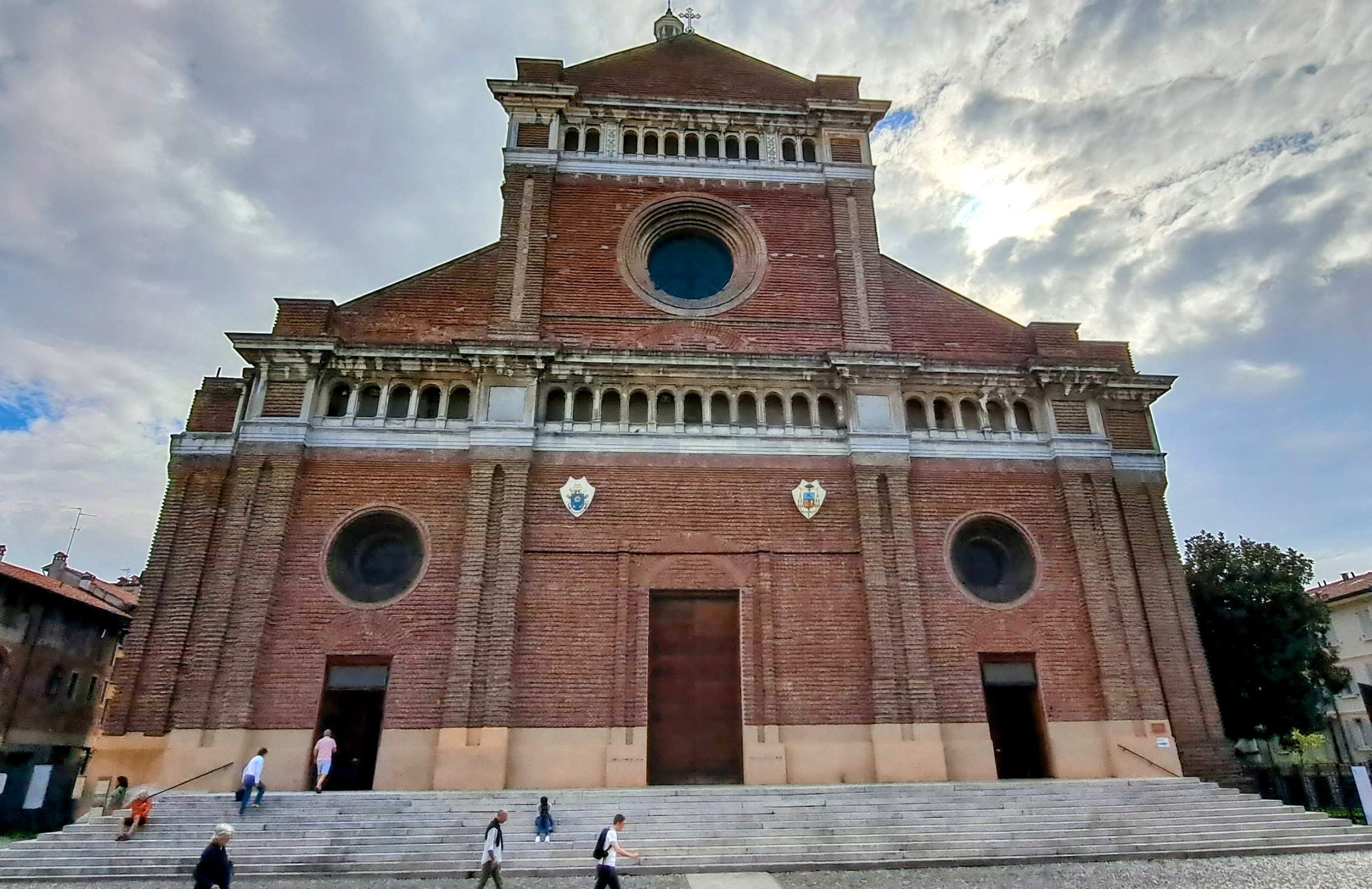 Pavia Cathedral (Italian: Duomo di Pavia) is a church in Pavia, Italy, the largest in the city and seat of the Diocese of Pavia. The construction was begun in the 15th century on the site of two pre-existing Romanesque, “twin” cathedrals (Santo Stefano and Santa Maria del Popolo). The cathedral houses the remains of St. Sirus, first Bishop of Pavia, and a thorn purported to be from the Crown of Thorns worn by Christ. The marble facing of the exterior was never completed.