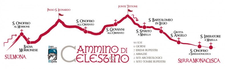 Celestino V and Abruzzo. It is undeniable that the figure of the poor hermit Pietro da Morrone who, at the end of 1200 became Pope with the name of Celestino V, belongs, with all his human and religious life, to the identity heritage of the Abruzzo people. The fresh recognition by UNESCO of Celestinian Forgiveness as an Intangible Heritage of Humanity further increases our responsibility in worthily cultivating the memory of this great person who distinguished himself in life for difficult and often innovative choices for the dictates of the Church of the time …. The Way is 90 km long. divided into 6 stages…It is entirely covered on foot on the Official Path Network of the Park, following the paths that, in all probability, Pietro used to move from one hermitage to another, from one valley to another…The departure takes place at the Badia Celestiniana in Sulmona and after touching Pacentro, Roccacaramanico, Caramanico Terme, Roccamorice and Lettomanoppello it ends at the Abbey of S. Liberatore a Maiella in the municipality of Serramonacesca…For travelers who undertake the Way, the Charta Peregrini (or Pilgrim’s Credential) is available which can be stamped in the Park Information Centers along the route and which, once completed, entitles you to receive the Celestine Cross, the Testimonium which certifies the entire journey of the stages.