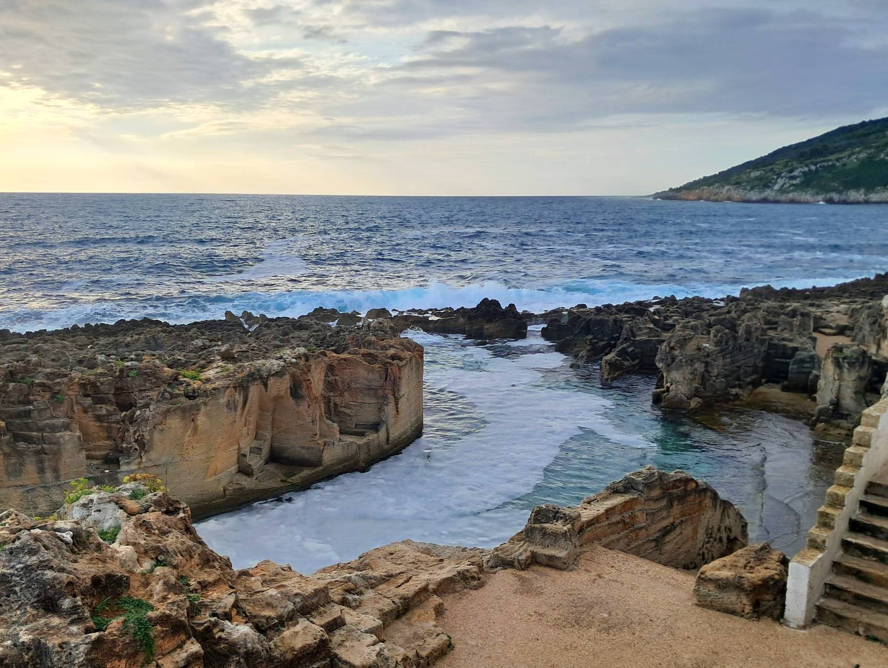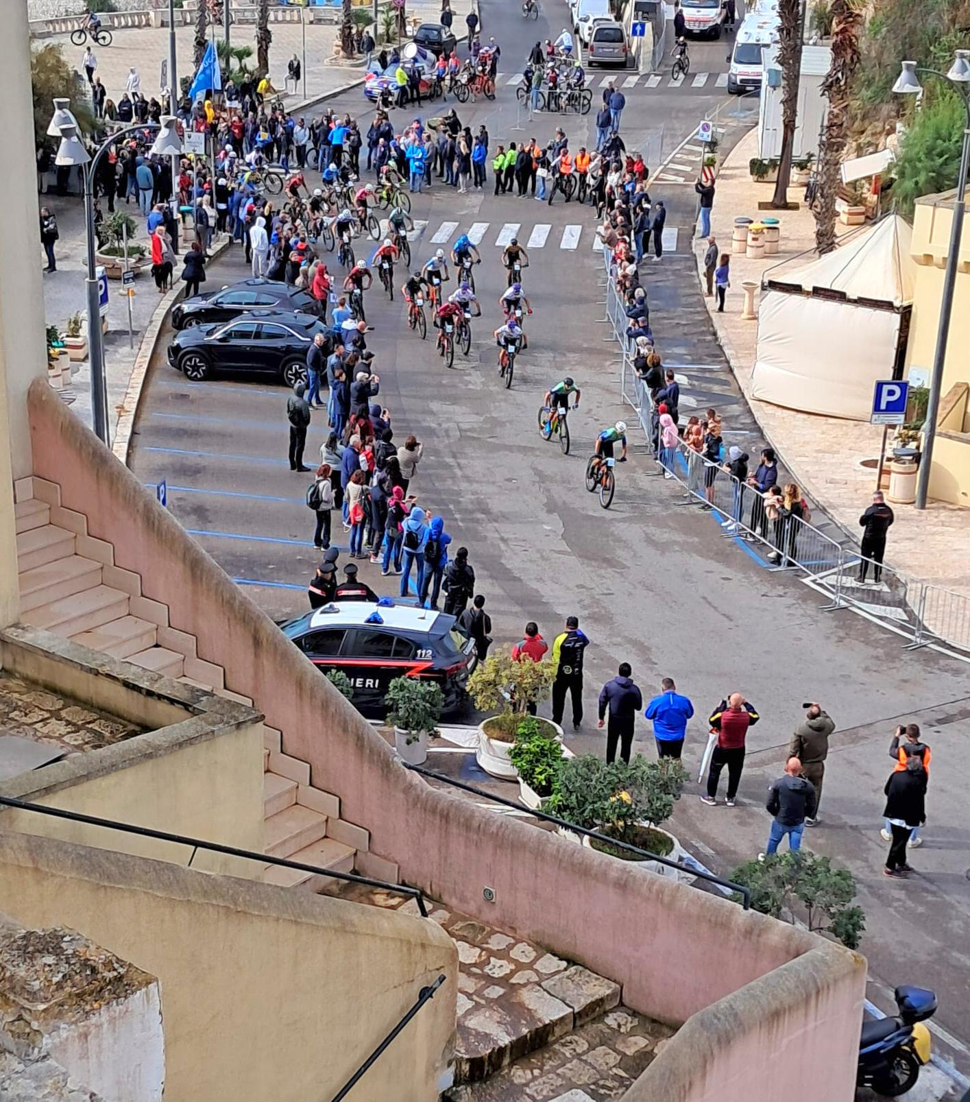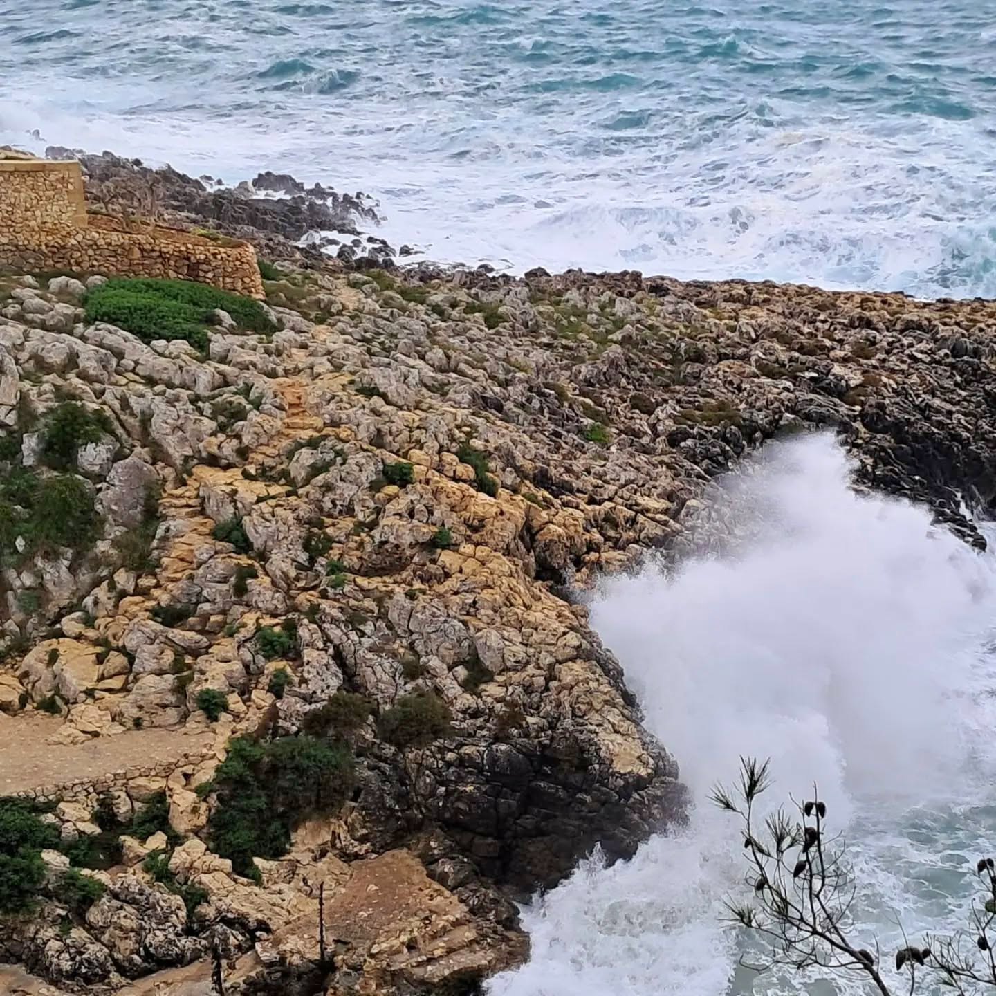 TAPPA 4 Santa Cesarea Terme to Marina Serra. 24km/14.9m . Today, we walked the entire tappa, as I could not find a halfway point for an overnight stay. The weather was crazy windy today, some rain early and serious surf again. There is something very thrilling about big surf, especially when you can experience it from a safe distance, such as these waves of the Adriatic crashing on the rocky shoreline. We passed through the historic center of Castro to view its castle, then came upon a well attended mountain bike race. Some of the trail that we hiked earlier in the day was to be part of their course. We pushed on to our destination for the day, the tiny hamlet of Marina Serra, known for its Piscina Naturale (Natural Pool). We stayed at a relaxing agriturismo and enjoyed a delicious meal.