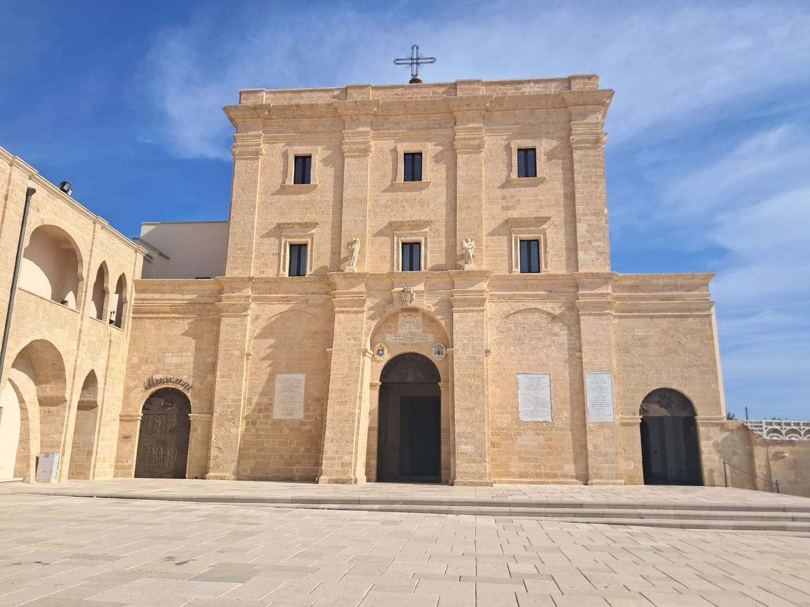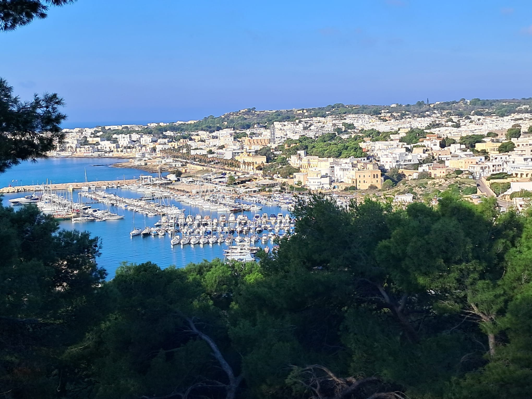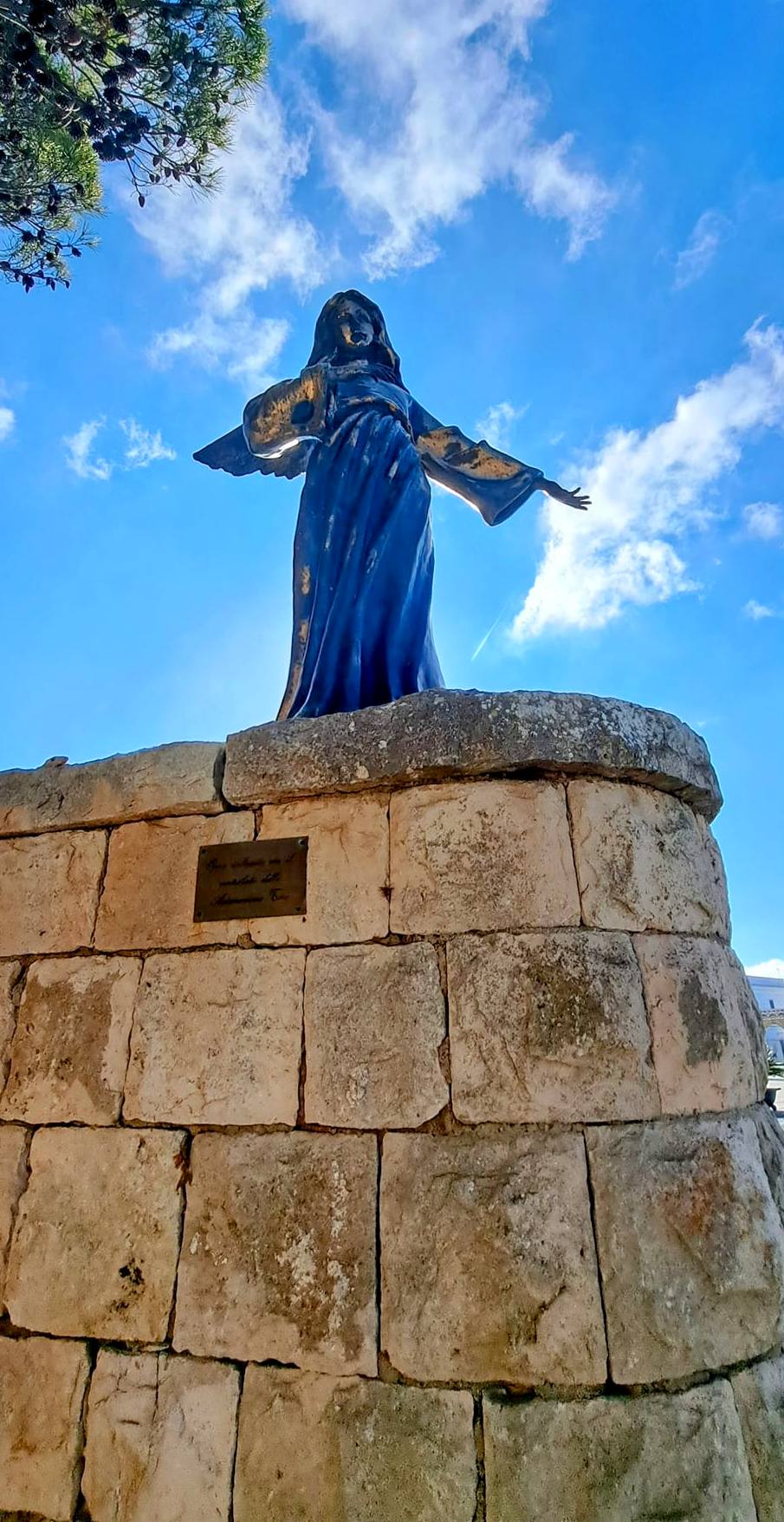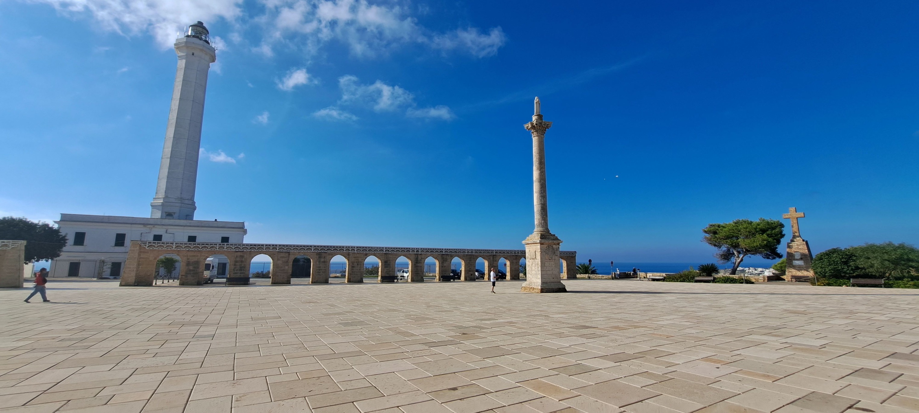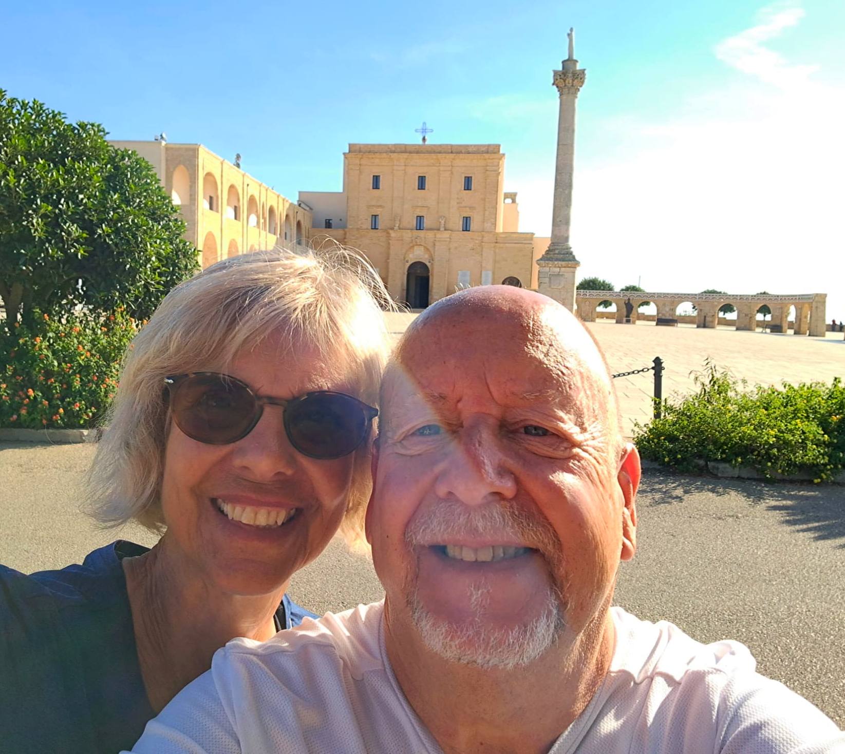 OUR FINAL DAY WALKING, rest of TAPPA 5 – only 7.8km/4.8m. Gagliano del Capo to Santa Maria di Leuca, the end of the heel of Italy. It seemed like a short walk this final section of the cammino, until we got to 280+ steps up to Santuario di Santa Maria de Finibus Terrae. The view of the city from the Santa Maria di Leuca Belvedere was gorgeous. There was much to see from the Piazza Giovanni XXIII; the Santurario, the lighthouse ‘Faro di Capo Santa Maria di Leuca, Colonna Mariana, Statua Benedetto XVI. We were hoping to see Albania, but the horizon was too cloudy. Here, also, occurs the meeting of the Adriatic and Ionian Seas! Such an amazing place to visit…
