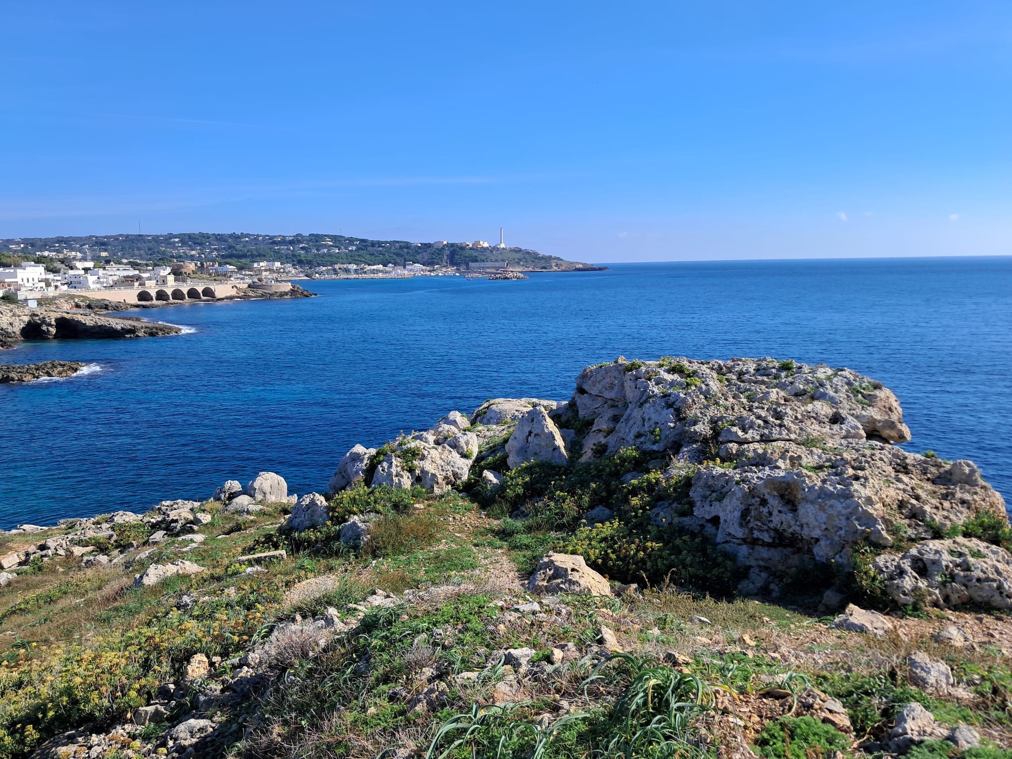 We trekked passed more signal towers, a bauxite quarry, World War II bunkers which were John’s favorite. We came upon lighthouse ‘Faro di Punta Palascia’, the furthest most eastern point of Italy. The coastline continued to be rugged, with rough seas but gorgeous surf. The views were wide as we moved on south to Porto Badsico. A note here: as it was off season for this coastline, most restaurants were closed in the smaller villages as well as lodging was limited. Thankfully, there were great bars with delicious food available and still some very nice apartments to rent.