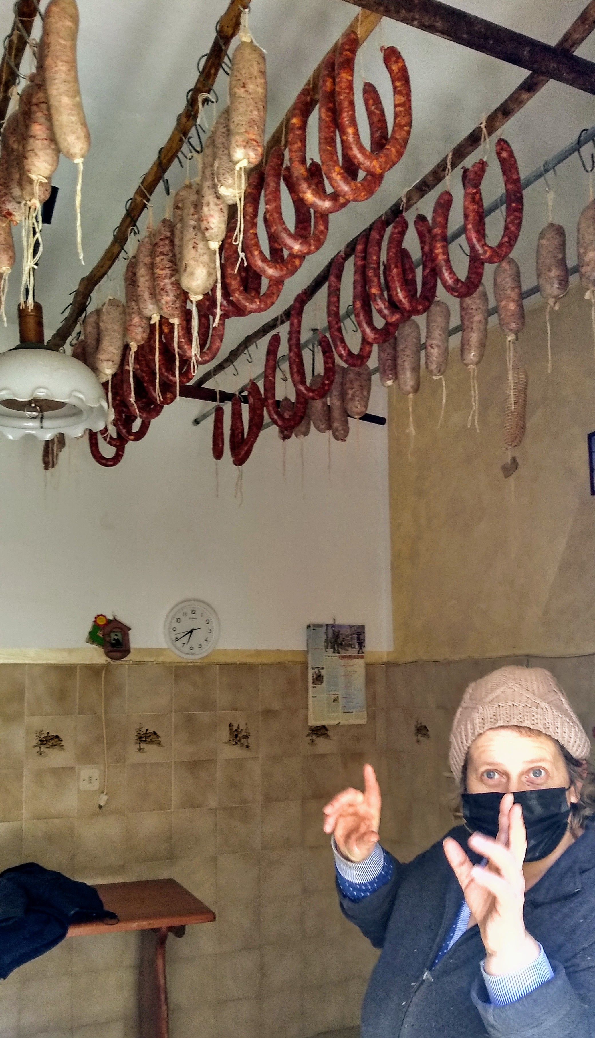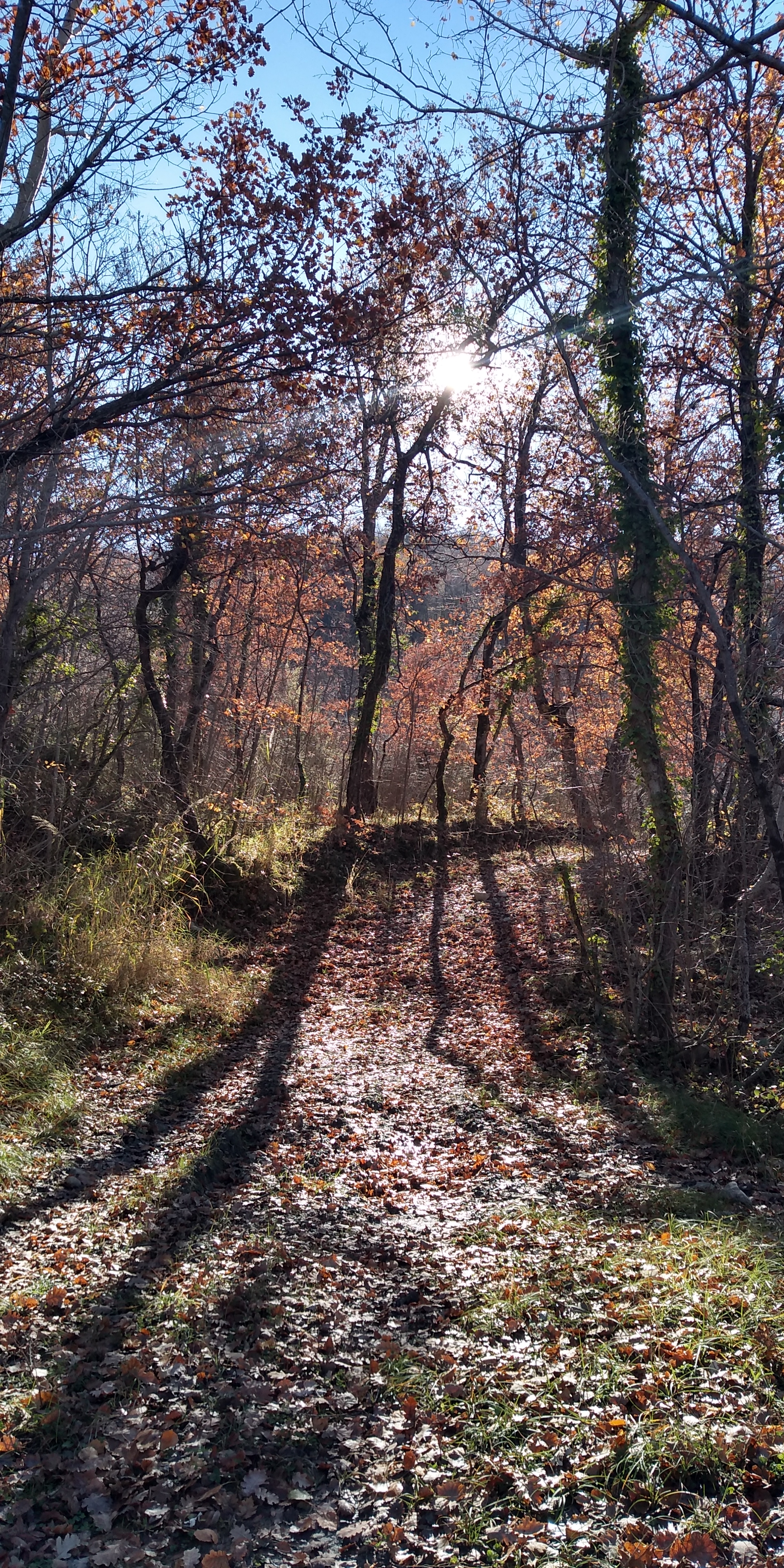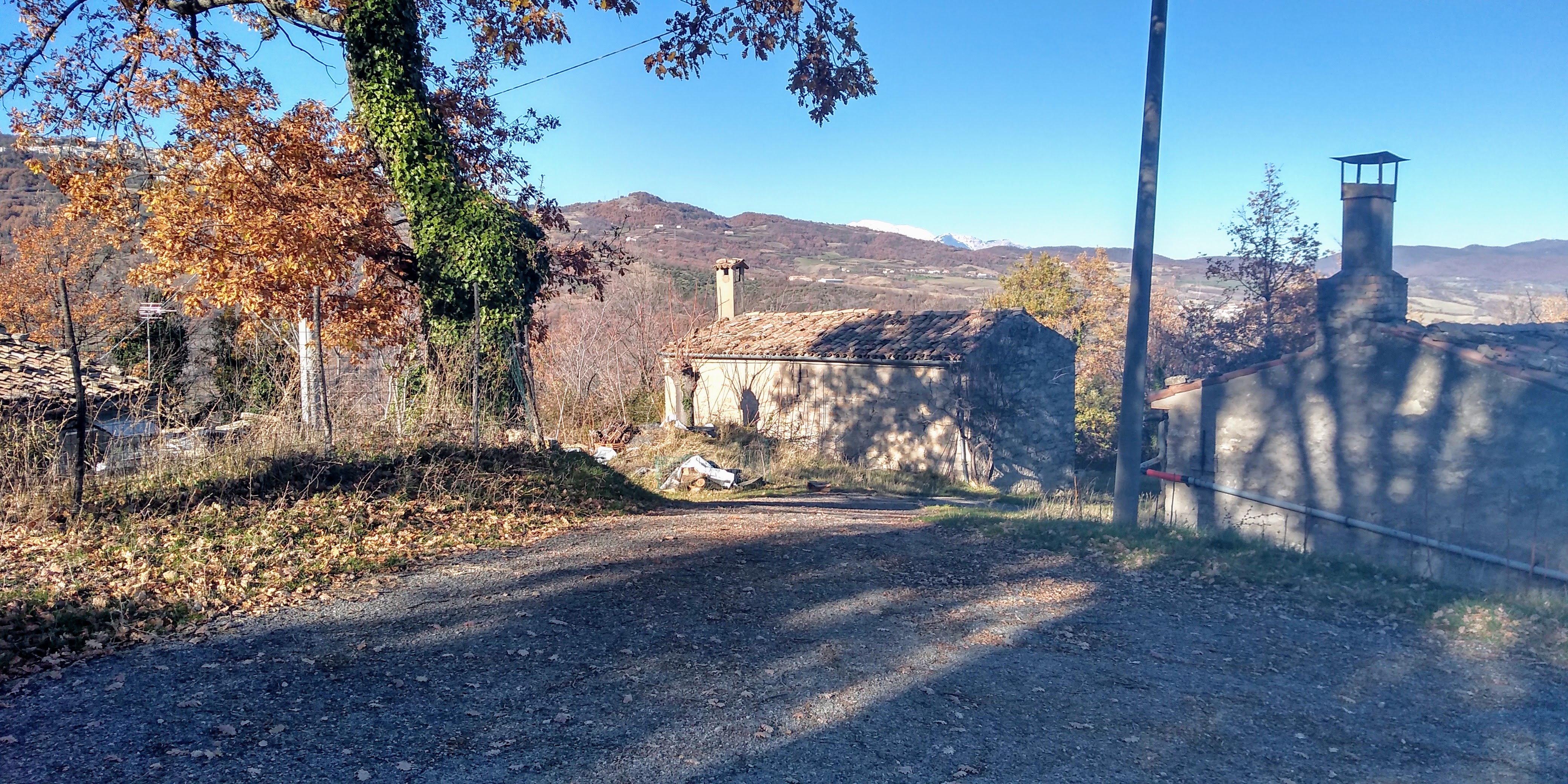 Our hike December 16, sunny winter day. We decided to head to Acquaviva through the woods via Frazione Campo Soci. Most of what we hiked yesterday was very familiar to us, but there was some forest roads that were new as we approached Acquaviva. Definitely not the time to hike forest roads and we are giving up on them until either they are frozen solid or it is warmer, drier weather. The mud was unbelievable! And here in Abruzzo, mud is like glue. It accumulates on the bottom and sides of your boots until you are walking on 5 inches / 12 cm of muck! Also the trail near the river was extremely overgrown, but it got us to our destination. Met lovely folks along the way at the different fraziones we passed through and stopped for some sausage at our friends’ home. We eventually headed home on the hard surface road. 8 miles / 12.8 km with altitude gain of 2023 ft/ 616 mt. As always, beautiful views of the Majella and Montazzoli.