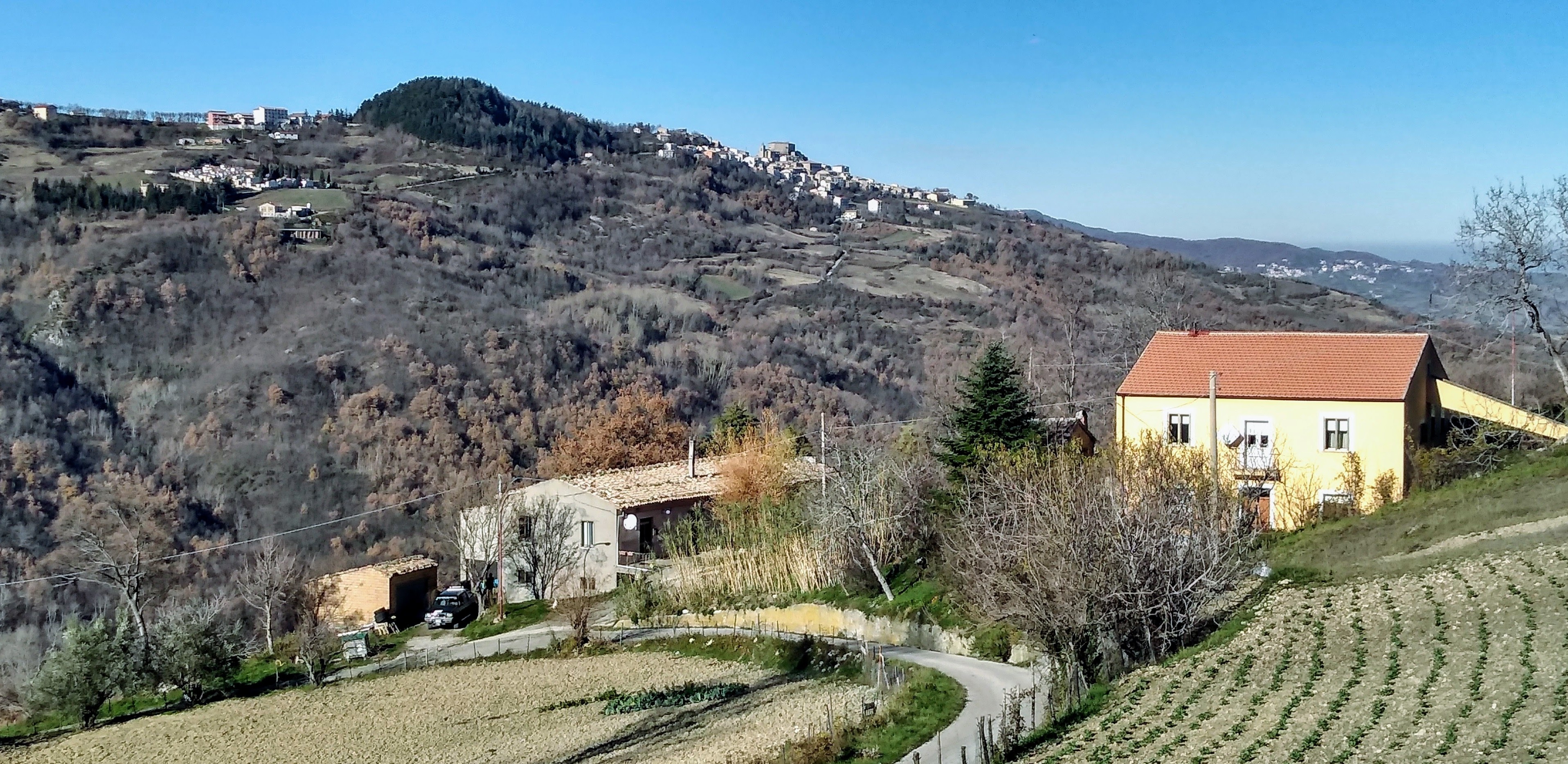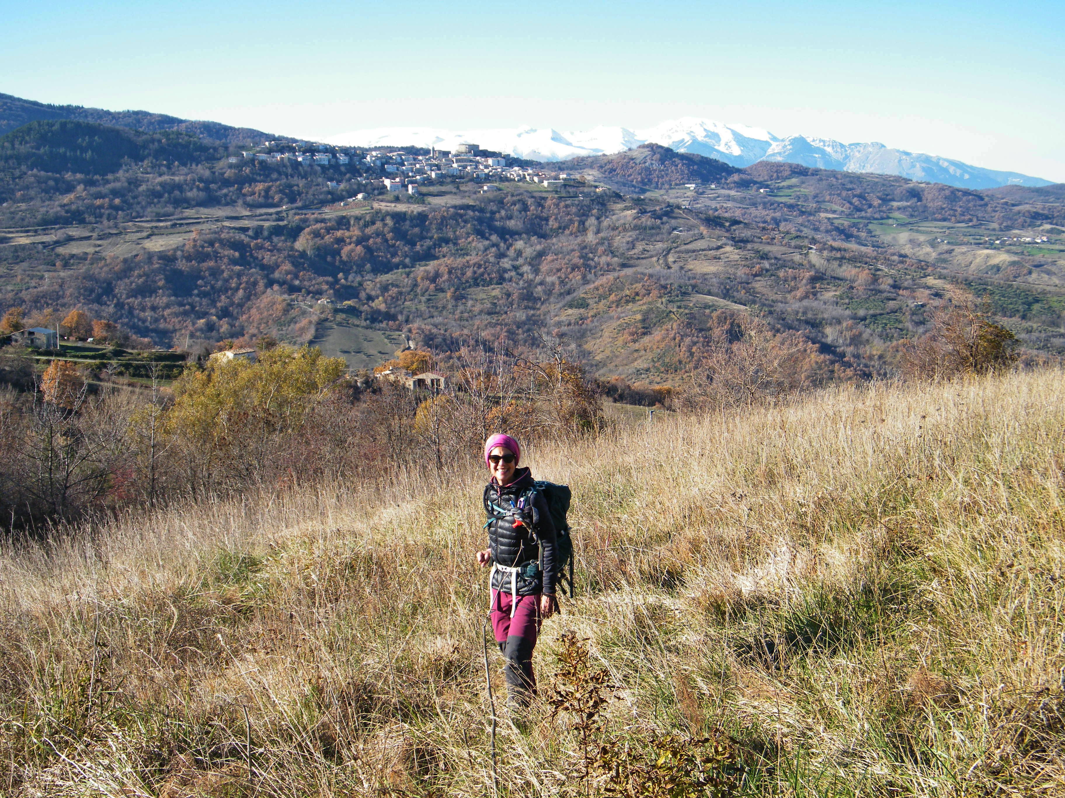 La nostra escursione il 16 dicembre, soleggiata giornata invernale. Abbiamo deciso di dirigerci ad Acquaviva attraverso il bosco passando per Frazione Campo Soci. La maggior parte di ciò che abbiamo camminato ieri ci era molto familiare, ma c’erano alcune strade forestali che erano nuove mentre ci avvicinavamo ad Acquaviva. Sicuramente non è il momento di percorrere strade forestali e ci arrendiamo fino a quando non saranno ghiacciate o non farà un clima più caldo e secco. Il fango era incredibile! E qui in Abruzzo il fango è come la colla. Si accumula sul fondo e sui lati degli stivali finché non cammini su 12 cm di letame! Anche il sentiero vicino al fiume era estremamente invaso dalla vegetazione, ma ci ha portato a destinazione. Ho incontrato persone adorabili lungo la strada nelle diverse frazioni che abbiamo attraversato e ci siamo fermati per un po ‘di salsiccia a casa dei nostri amici. Alla fine ci siamo diretti a casa sulla strada di superficie dura. 8 miglia / 12,8 km con dislivello di 2023 ft / 616 mt. Come sempre splendidi scorci sulla Majella e su Montazzoli.