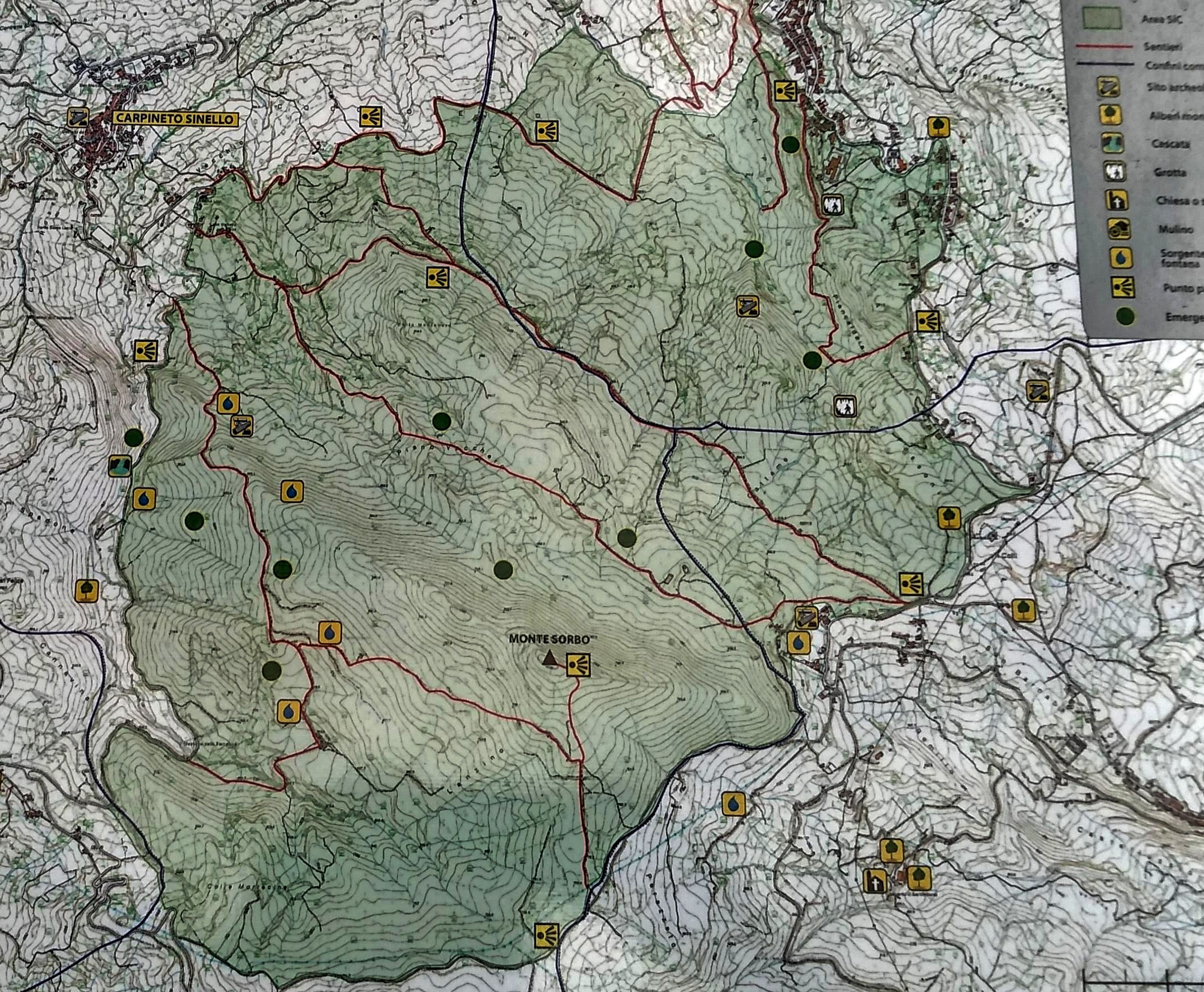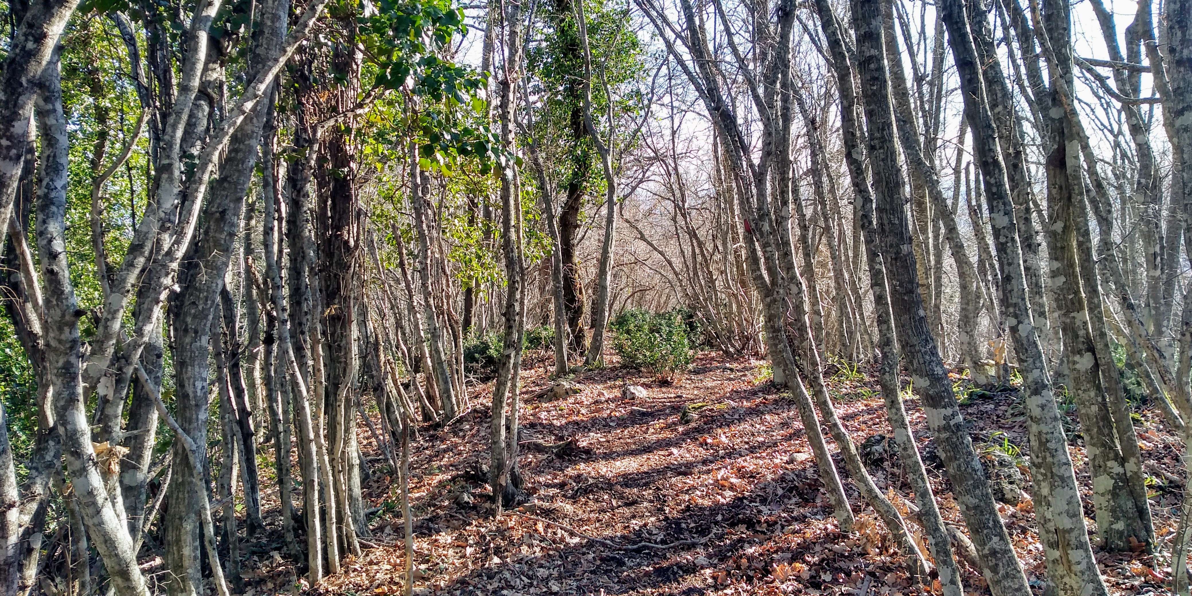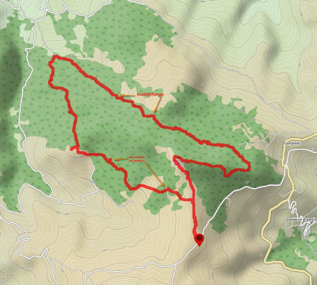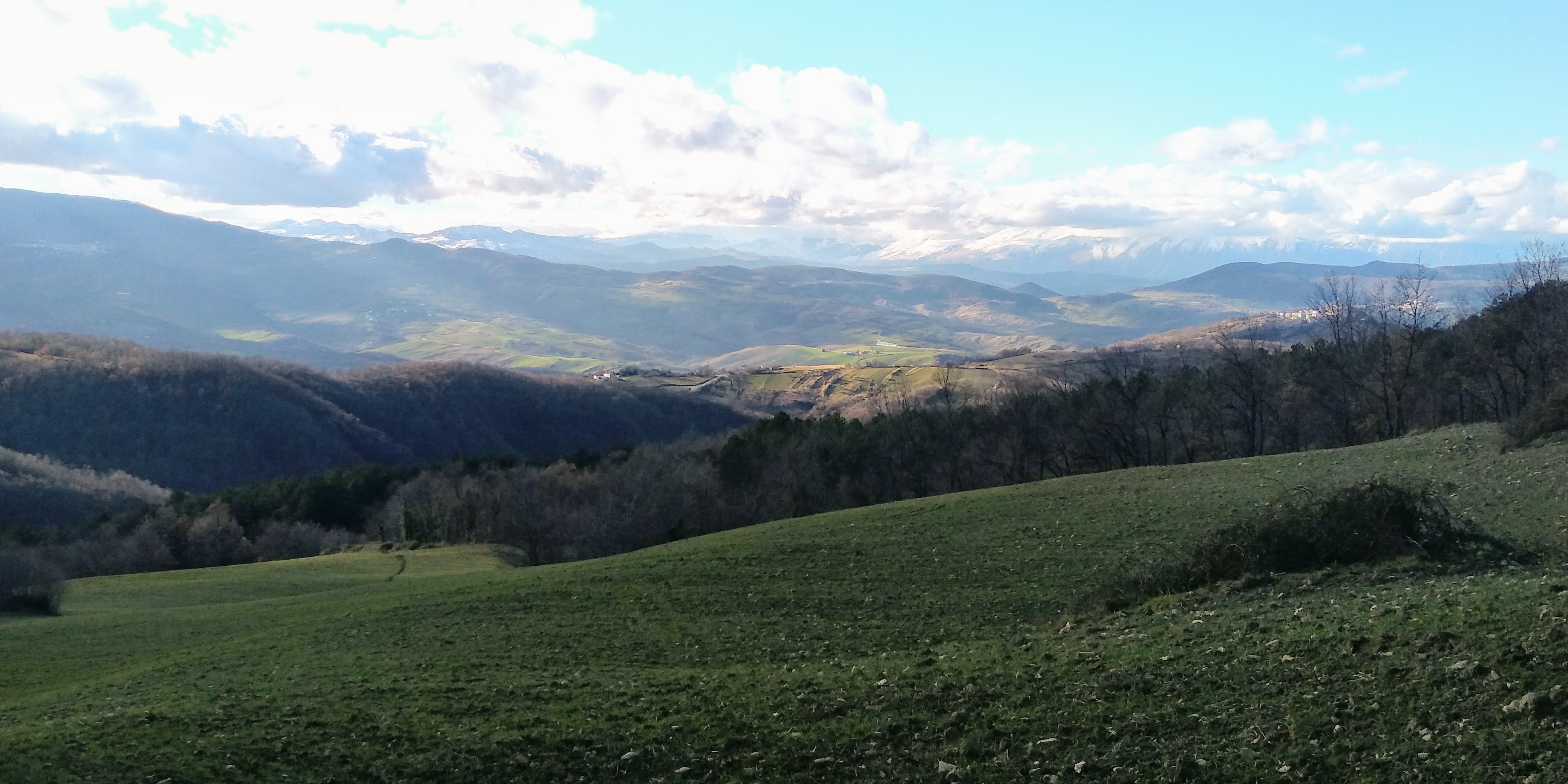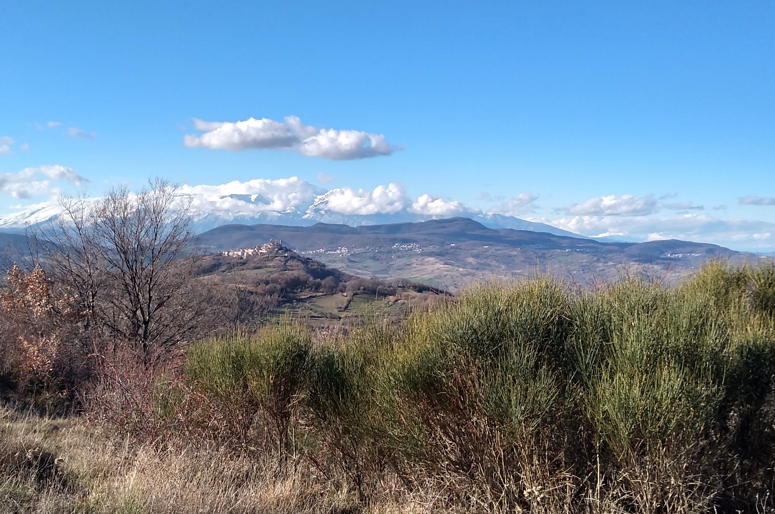Earlier this week, we headed over to Monte Sorbo, which is about 20 minutes from home. We can see the summit from our house and have been hoping to hike it for sometime. The trail I choose was a combination of forest trails with the standard red & white signs and some forest roads. We were so surprised by the numerous ancient ruins throughout the circuit. This area must have been well populated years ago. There were spectacular views of the Majella and surrounding hill towns. Also at the start of the hike, we could see over the Adriatic Sea to the Tremiti Islands and the Gargano Peninsula. There was a section of the forest road that was pretty muddy and I marked that on the map. Also I got us a bit lost as we approached the conclusion of the trail, so there was some bushwacking until I got back on course. Also marked on trail. Somehow I missed a turn in the forest road. It was a beautiful hike which we both highly recommend. 6.35 m/10.15 km, Altitude gain 2284 ft/ 696 mt., summit height 2952 ft/ 900 mt.