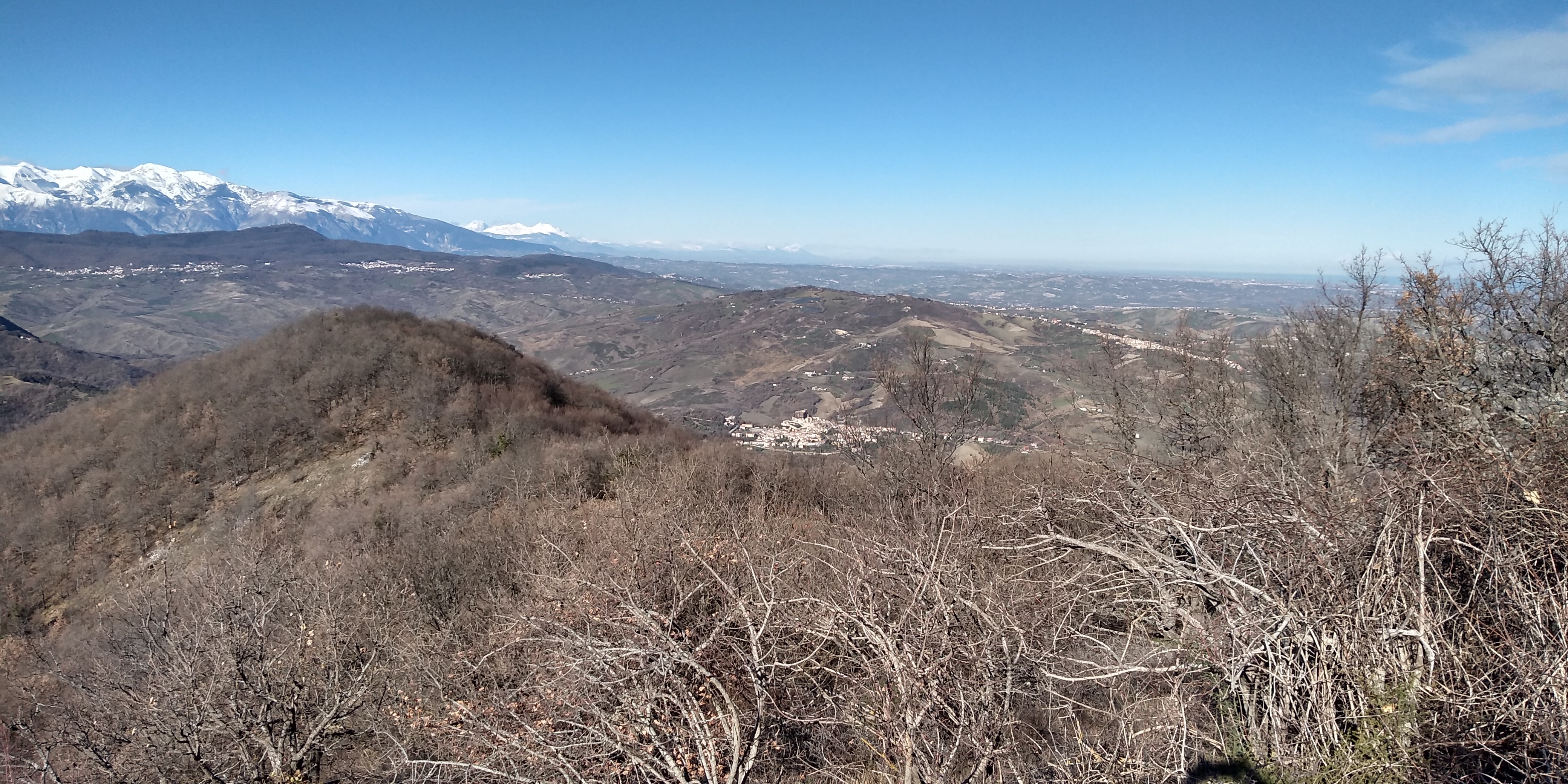 All’inizio di questa settimana ci siamo diretti al Monte Sorbo, che dista circa 20 minuti da casa. Possiamo vedere la vetta da casa nostra e da tempo speravamo di fare un’escursione. Il sentiero che ho scelto era una combinazione di sentieri forestali con i segnali standard rossi e bianchi e alcune strade forestali. Siamo rimasti così sorpresi dalle molte antiche rovine intorno al circuito. Questa zona deve essere stata ben popolata anni fa. C’erano viste spettacolari della Majella e delle città collinari circostanti. Già all’inizio dell’escursione abbiamo potuto vedere il mare Adriatico fino alle Isole Tremiti e alla penisola del Gargano. C’era un tratto di strada forestale che era abbastanza fangoso e l’ho segnato sulla mappa. Mi sono anche perso un po ‘mentre ci avvicinavamo alla fine del sentiero, quindi abbiamo camminato con un sentiero fino a quando non sono tornato sulla rotta. Segnato anche sul sentiero. In qualche modo ho perso una svolta nella strada forestale. È stata una bellissima escursione che entrambi consigliamo vivamente. 6,35 m / 10,15 km, dislivello positivo 696 m, altitudine massima 900 m.