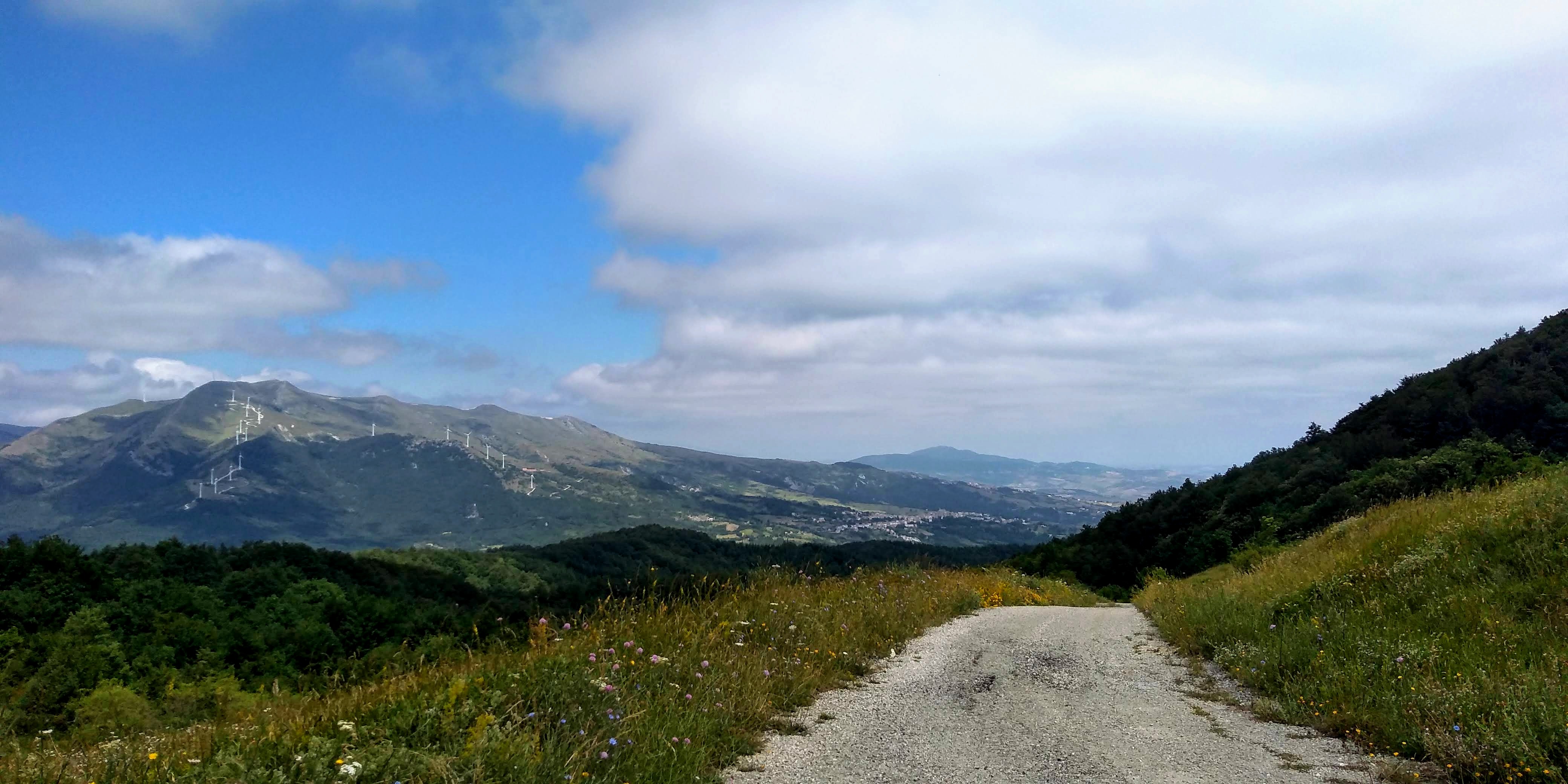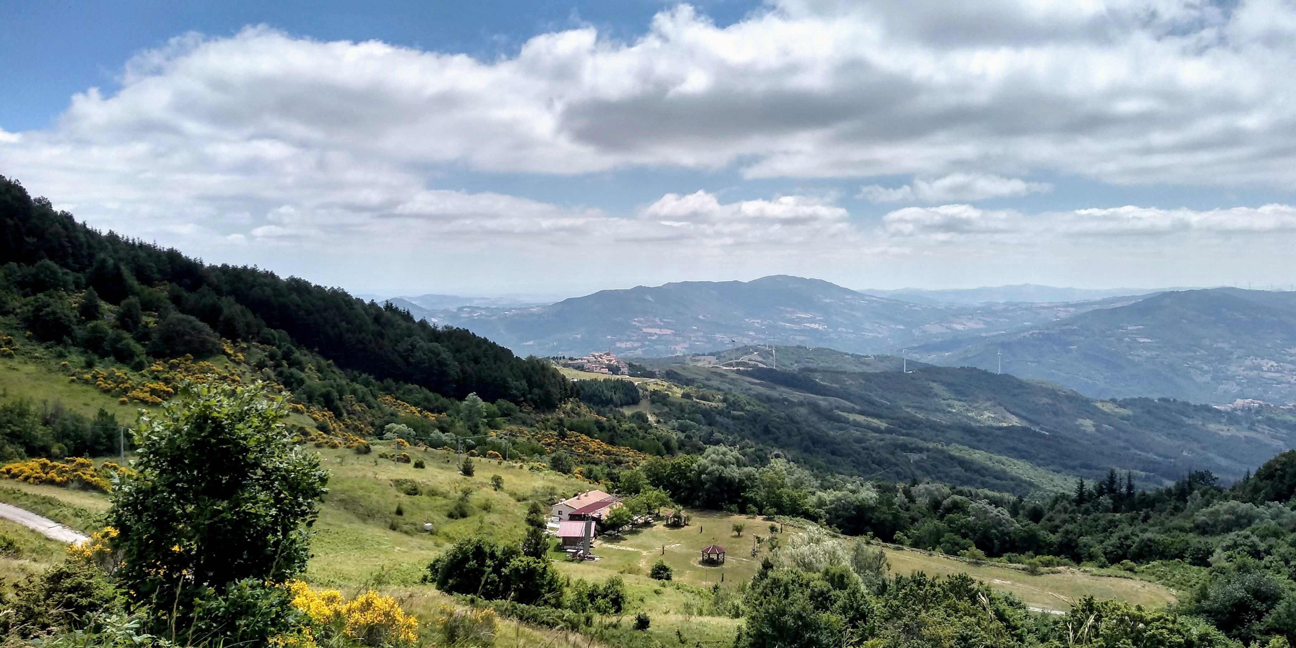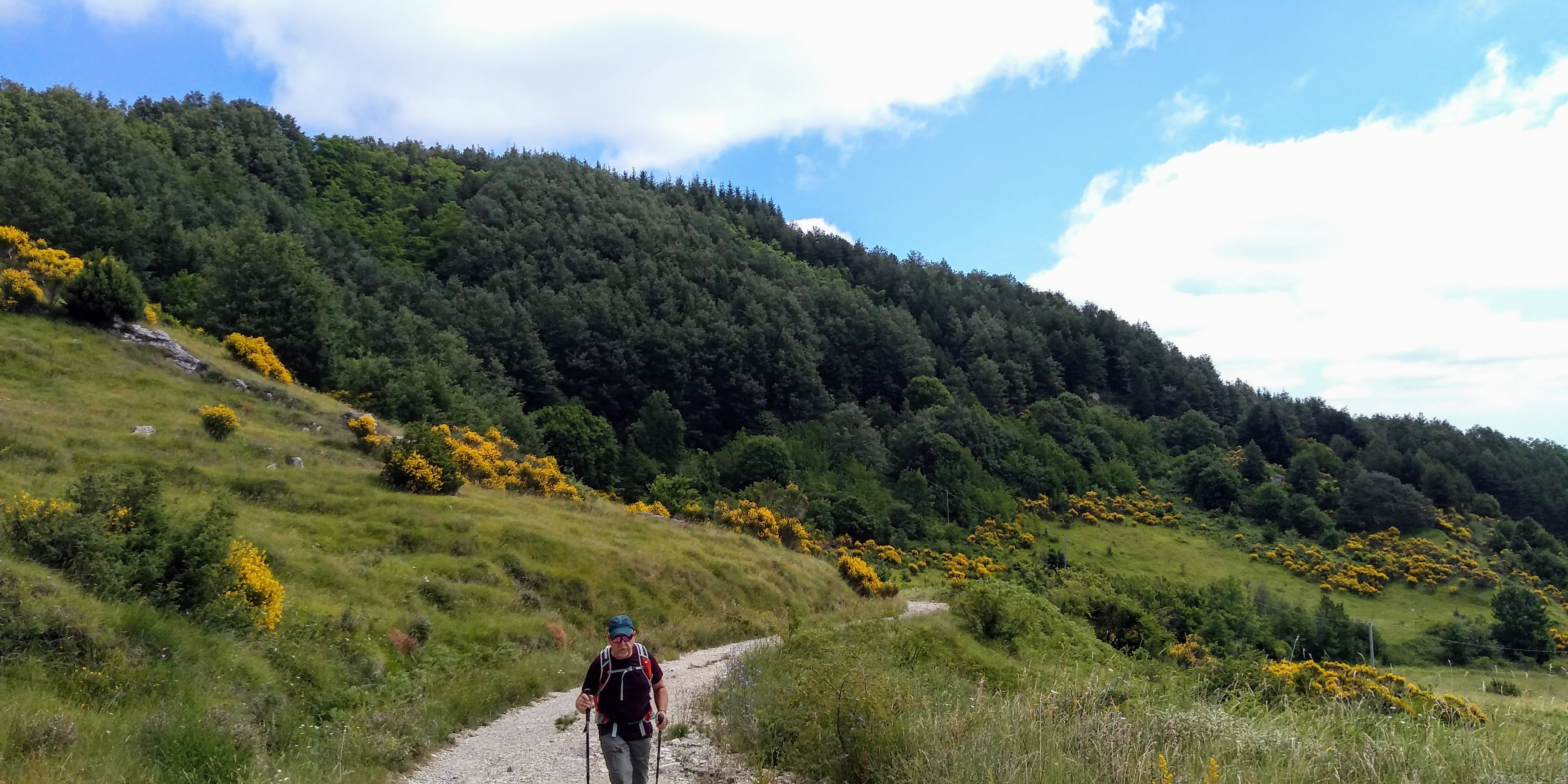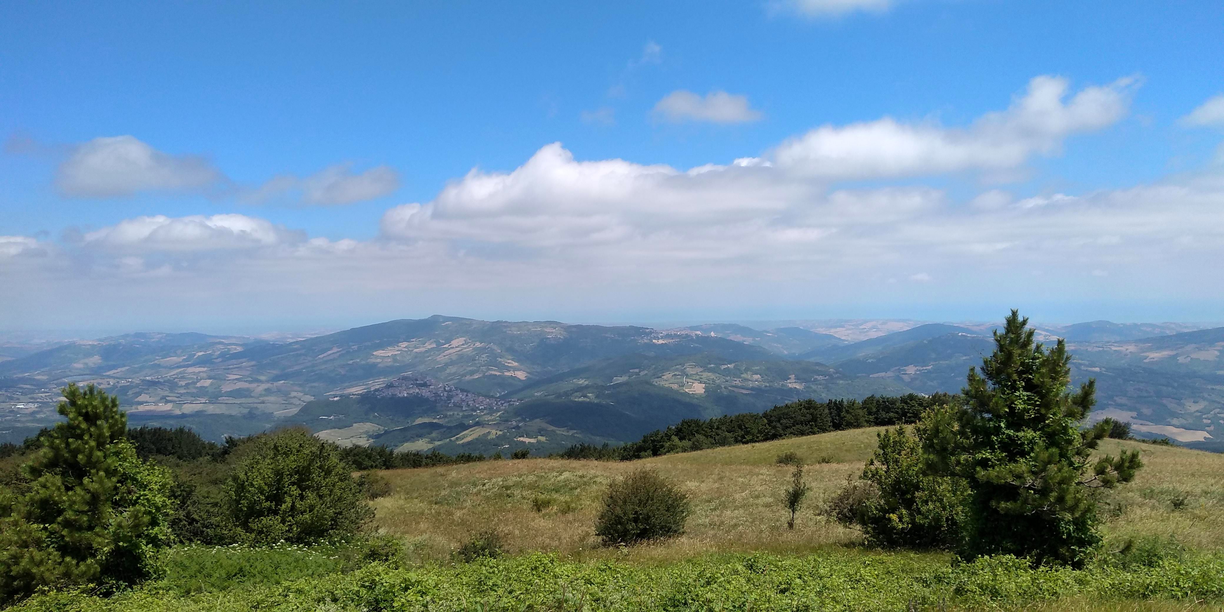 An excellent circuit hike only 30 minutes from our house – Torrebruna! Outstanding long views toward Molise, Gargano Peninsula, Adriatic coastline, north towards Monte Pallano. Medium difficulty, but well marked trail. We went clockwise starting and returning at the Chiesa Madre del Santissimo Salvatore. The only hiccup was finding the trail after Fonte Petriacolo. It wasn’t marked and we lost about 45 minutes hiking up and down the road to figure it out. I circled it in yellow at bottom of map. Once we found it, we headed up through beautiful open fields with amazing views. We walked through lovely forests to the top for 360 views. Heading down we returned through deep shade of evergreens and deciduous trees.. hemlocks, firs, and very large beeches. Numerous fountains along the way to top up your water. We did have a ‘big’ surprise at the end of the trail back into town – a very large sow (boar) crossed our path, luckily to head away from us, but one of her babies got separated and we got a bit worried that the mother would return! Safely back in town we ended our walk back at the church but unfortunately is was closed for the mid-day hours. All in all, just an outstanding hike. Subtracting the 45 minutes of delay at the beginning, approximately 6 miles with elevation gain of 2230 feet.