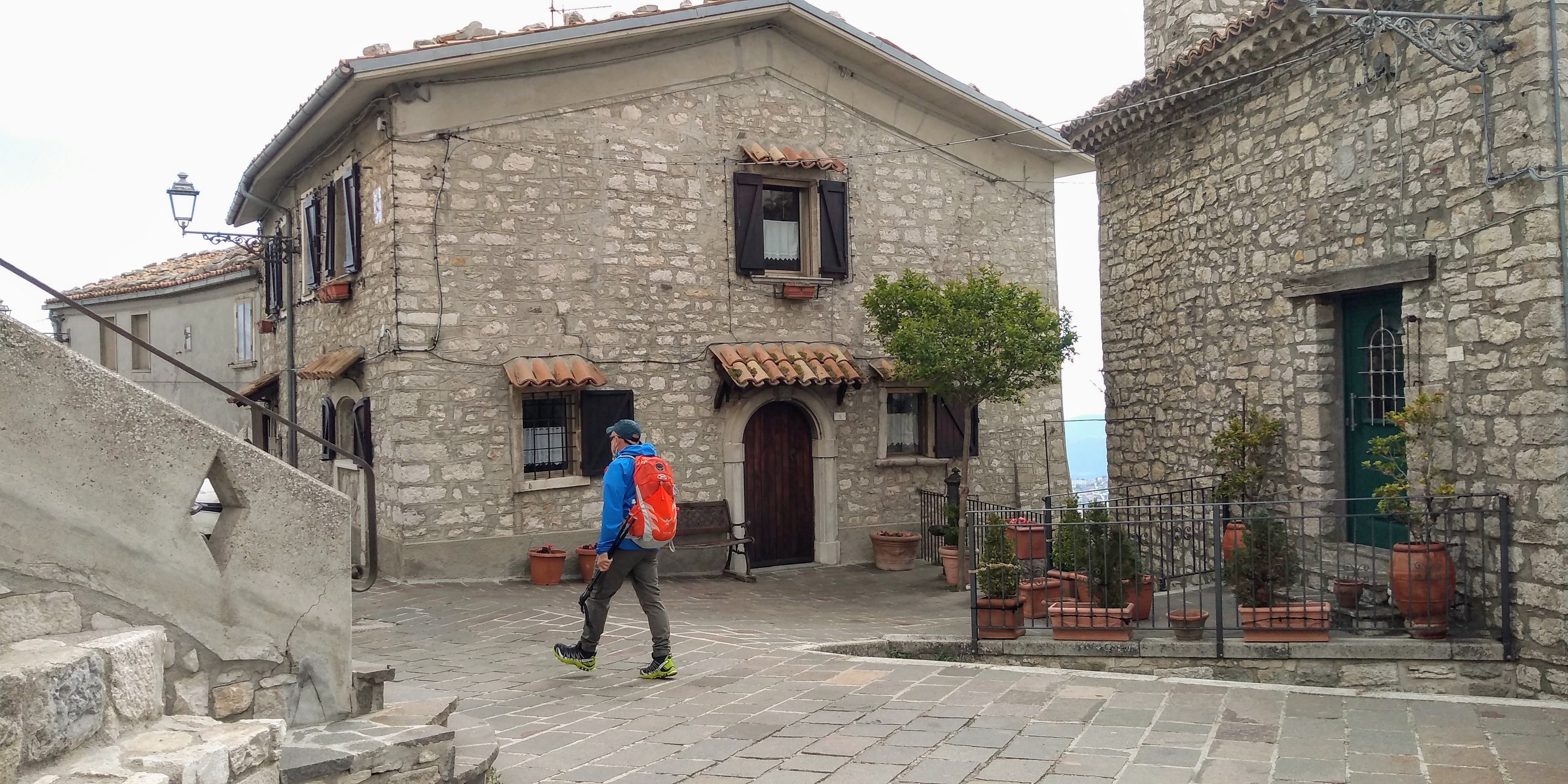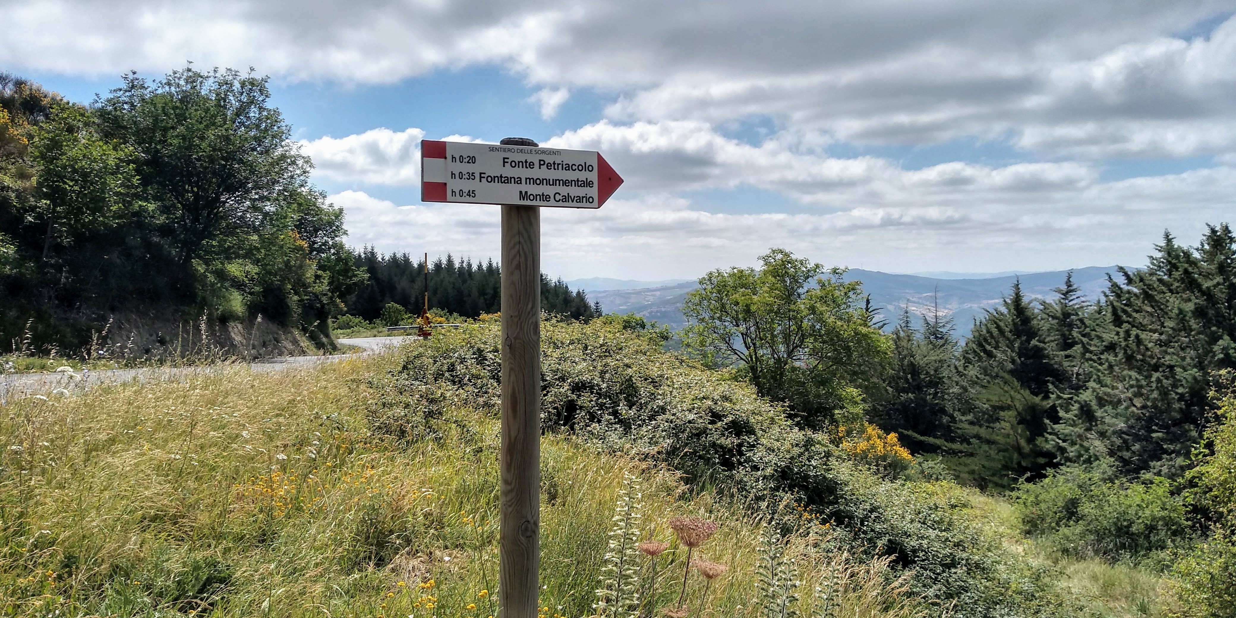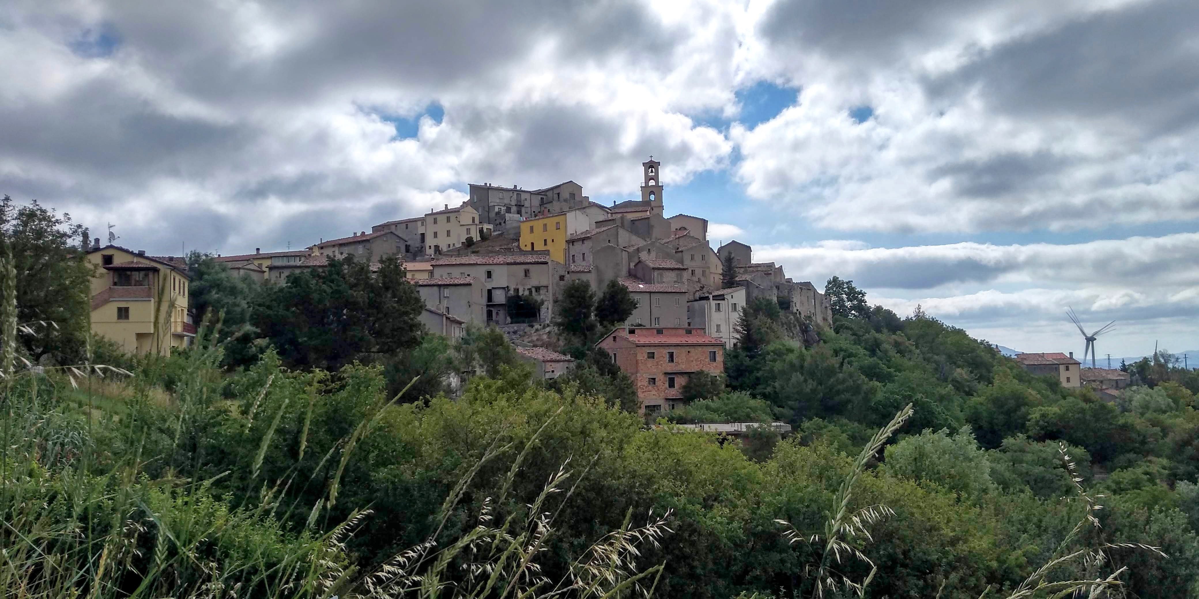 An excellent circuit hike only 30 minutes from our house – Torrebruna! Outstanding long views toward Molise, Gargano Peninsula, Adriatic coastline, north towards Monte Pallano. Medium difficulty, but well marked trail. We went clockwise starting and returning at the Chiesa Madre del Santissimo Salvatore. The only hiccup was finding the trail after Fonte Petriacolo. It wasn’t marked and we lost about 45 minutes hiking up and down the road to figure it out. I circled it in yellow at bottom of map. Once we found it, we headed up through beautiful open fields with amazing views. We walked through lovely forests to the top for 360 views. Heading down we returned through deep shade of evergreens and deciduous trees.. hemlocks, firs, and very large beeches. Numerous fountains along the way to top up your water. We did have a ‘big’ surprise at the end of the trail back into town – a very large sow (boar) crossed our path, luckily to head away from us, but one of her babies got separated and we got a bit worried that the mother would return! Safely back in town we ended our walk back at the church but unfortunately is was closed for the mid-day hours. All in all, just an outstanding hike. Subtracting the 45 minutes of delay at the beginning, approximately 6 miles with elevation gain of 2230 feet.