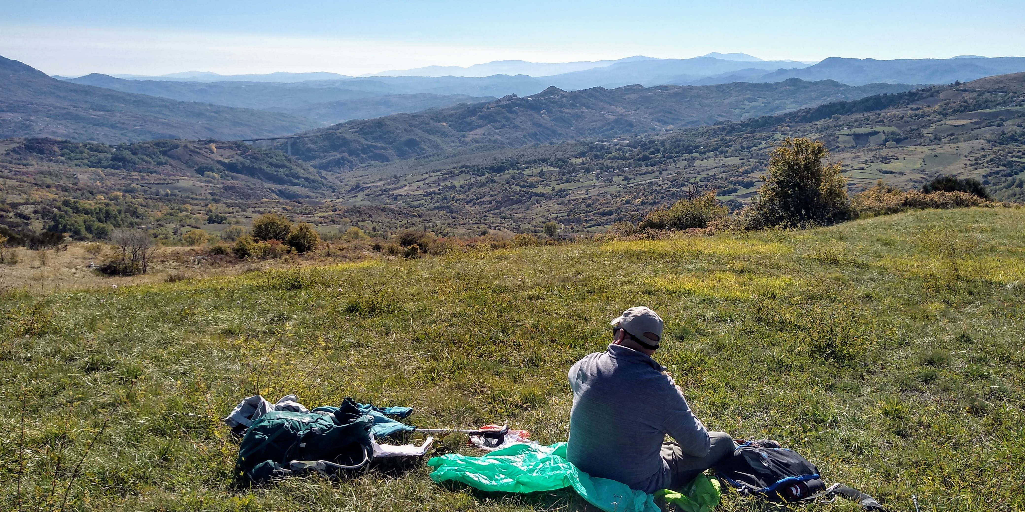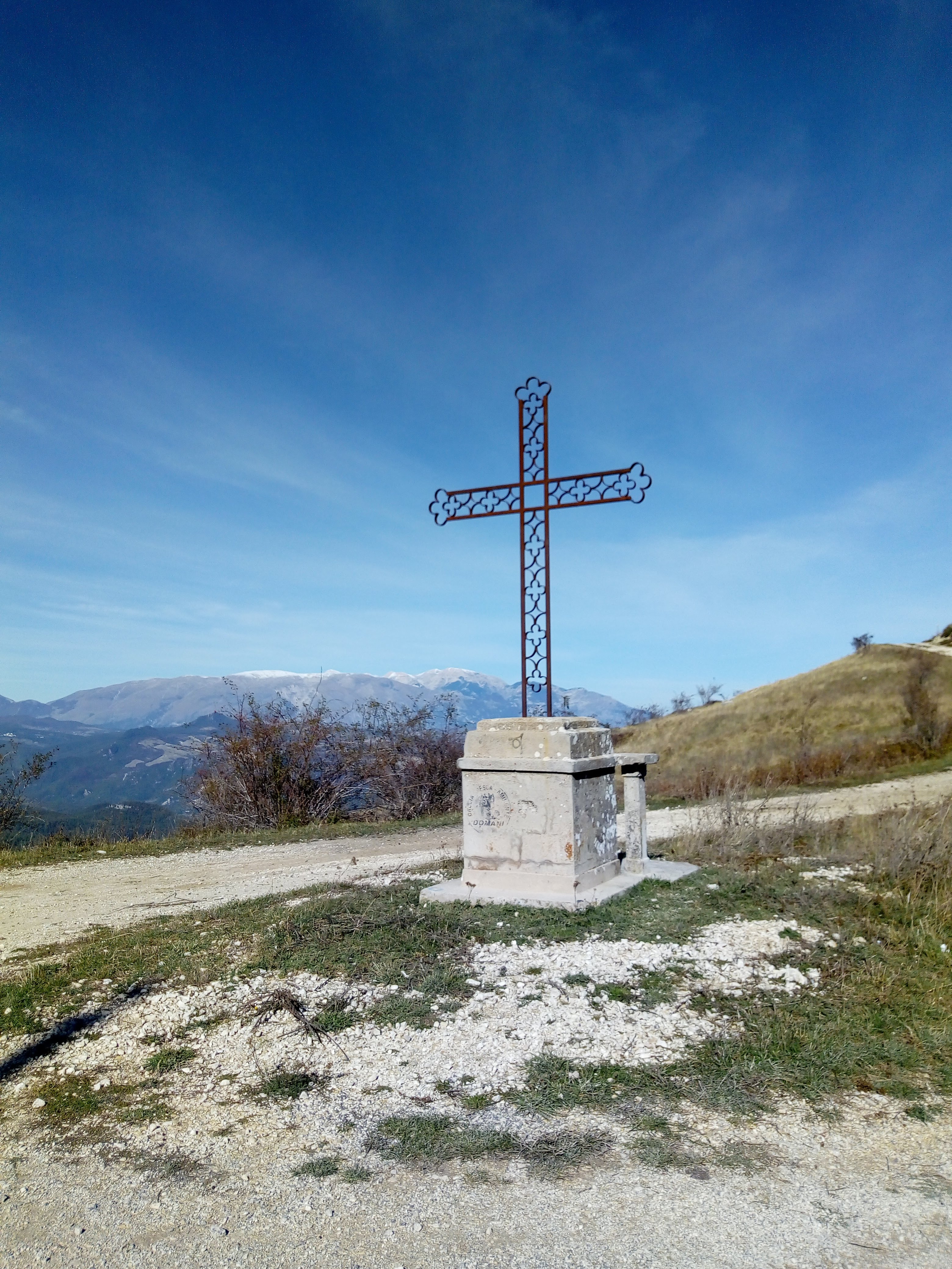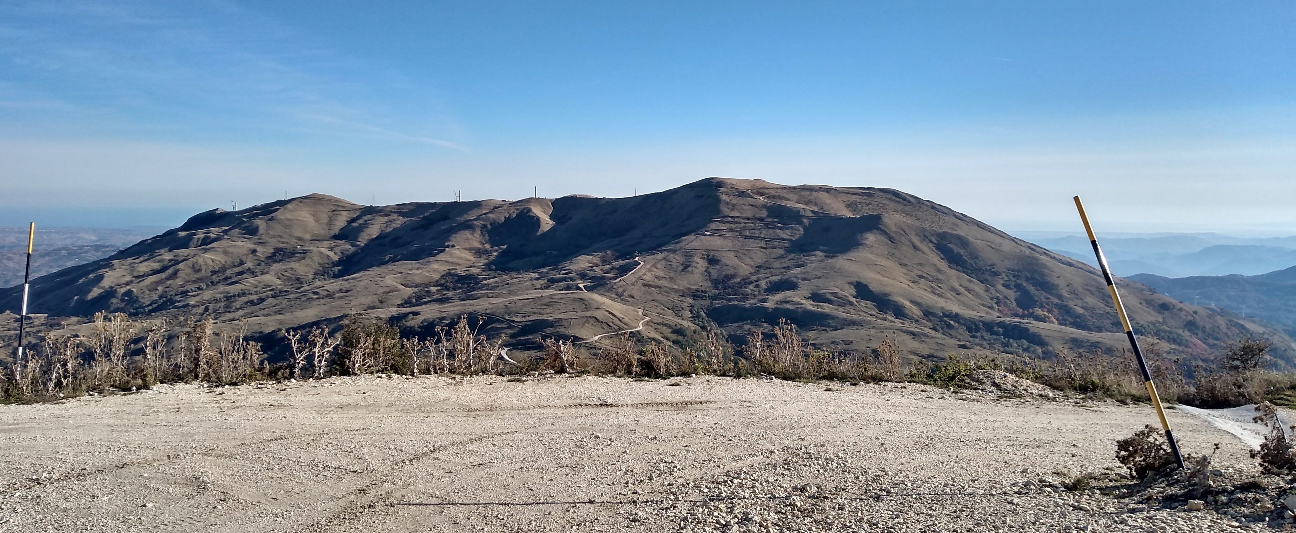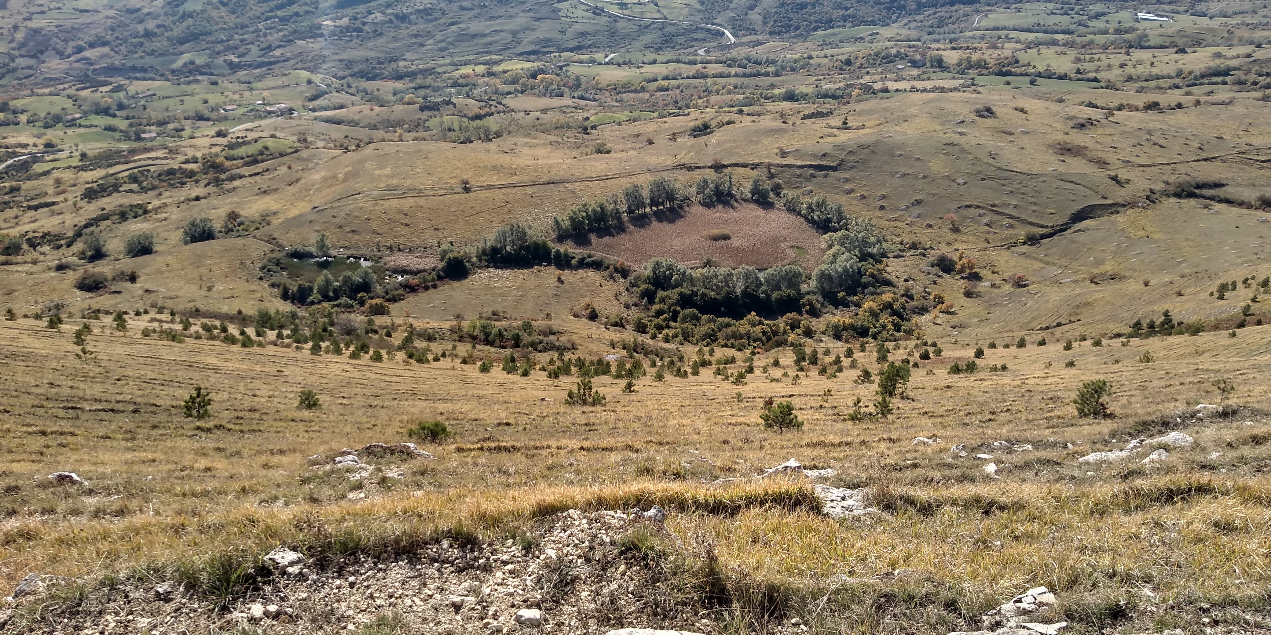 A new hike for us ( 40 minutes from our house)and what a beautiful surprise. Long vistas toward sea, Molise, the Majella, green valleys with leaves changing colors for Fall. We started up at the wind farm, down to the valley and then finished back where we started. I missed a turn, missing Lago La Croce up close, (see maps), but corrected toward the climb back up to mountain. We did get a view of the lake up from up high. We will return to do this hike middle of November, when colors more intense. Care to join us? 14km/8.7 miles, elevation change 605 m/ 2132 ft, elevation 1379 m/ 4524 ft ![]()