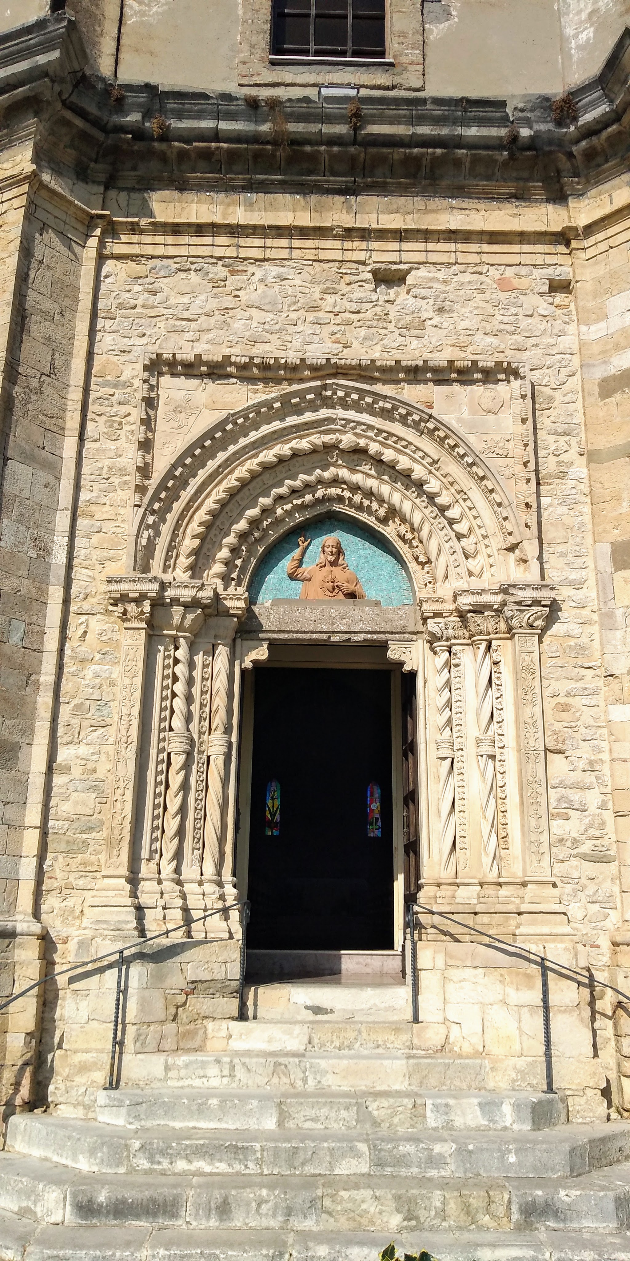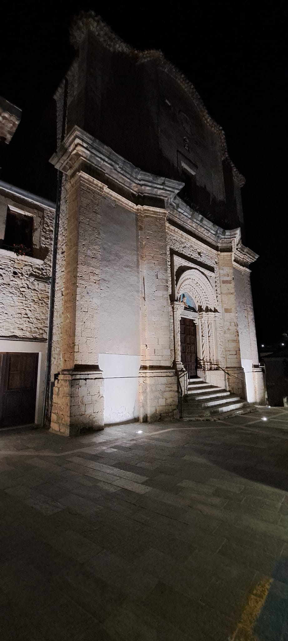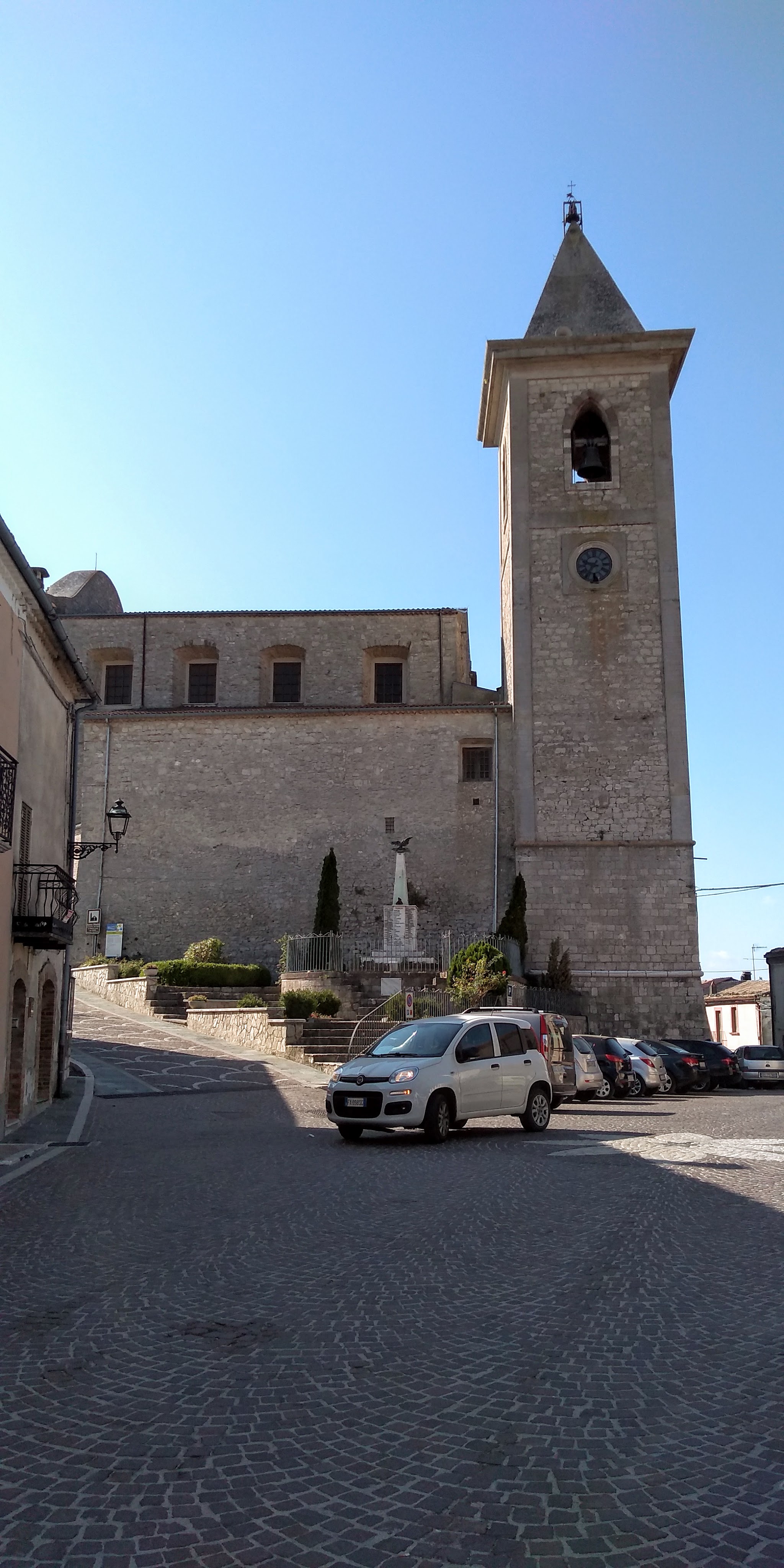 Church of Santa Giusta It is located in Piazza Marconi. It was built before the 16th century, with subsequent transformations in the 18th century. The church is located at the highest point of the village near the Porta da Capo and the market square also known as Largo Outside the Door. The façade consists of a curved pediment placed in the upper crown. The central area is delimited by pilasters and two wings. A cornice divides the facade into two registers. The portal, completely restored by the sculptor Felice Giuliante after the Second World War, is made of stone carved in late Gothic style with Renaissance elements in the side pilasters. The interior has three naves.[7] The bell tower has a square plan and consists of a pyramidal spire.[8] The church has been recognized as an Italian national monument.